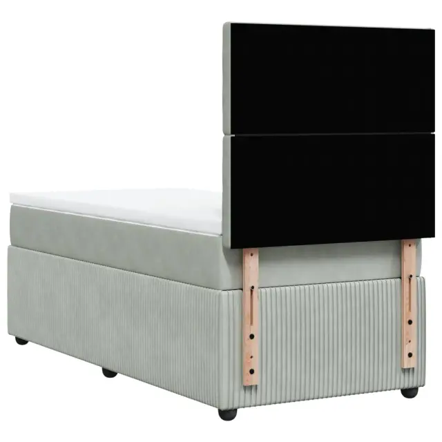 Uporabite to posteljo za uživanje v mirnem spancu! Ponuja maksimalno sprostitev in prijeten spanec. Mehak in udoben material: Vlažna tkanina iz žameta ima mehko in gladko površino, ki zagotavlja prijeten občutek ter vam zagotavlja toploto in popolno udobje. Ležišče z žepkastimi vzmetmi: Ta vzmetnica z žepkastimi vzmetmi ima posamezne žepkaste vzmeti, ki delujejo neodvisno in zagotavljajo prilagojeno podporo, saj se odzivajo le na pritisk na posameznem območju. Takšna zasnova preprečuje, da bi se ležišče "zvijalo skupaj", in zmanjšuje prenos gibanja v primerjavi s tradicionalnimi ležišči z odprtimi vzmetmi. Vsaka žepkasta vzmet podpira telo posebej. LED osvetlitev za prijeten ambient: To posteljo odlikuje LED osvetlitev, ki jo je mogoče preprosto nastaviti in tako ustvariti posebno svetlobno predstavo. Prilagodite lahko načine, barve in svetlost ter tako izboljšate vzdušje v notranjem prostoru. Nastavljiva višina vzglavja: Višina vzglavja je nastavljiva po vaših željah. Udobna vzmetnica: Ta nadvložek za vzmetnico z mehko in zračno površino poveča podporo in udobje ter hkrati podaljša življenjsko dobo vaše vzmetnice. Odstranljiva prevleka omogoča enostavno pranje, zato je vzdrževanje enostavno. Dobro je vedeti: Izdelek ima priključek USB, ki zahteva certificiran vir napajanja 5 V USB (ni priložen). Zaradi higienskih razlogov vzmetnice ni mogoče vrniti po odstranitvi ali odprtju embalaže. Režete lahko samo del s simbolom škarij in samo del z USB bo deloval kot prej.Posteljni okvir z vzglavjem:Barva: Svetlo sivaMaterial: Žamet (100 % poliester), vezan les, konstruiran lesDimenzije: 200 x 90 x 140,5/150,5 cm (D x Š x V)Utrjene plastične nogicePotrebno sestavljanje: DaVzmetnica:Barva: Bela in svetlo sivaMaterial: Žamet (100 % poliester)Material polnila: Žepkaste vzmeti, penaTrdnost: SrednjaDimenzije: 90 x 200 x 20 cm (Š x D x V)Nadvzmetnica:Barva: BelaMaterial: Blago (100 % poliester)Material polnila: PenaDimenzije: 90 x 200 x 5 cm (Š x D x V)Odstranljiva in pralna prevlekaLED trak:Dolžina: 55 cmNapetost: DC 5 VDolžina kabla USB : 150 cmDolžina električnega kabla: 30 cmIP ocena: IP65S simbolom za rezanje s škarjamiPaket vsebuje:1 x Posteljni okvir1 x Vzglavje1 x Vzmetnica1 x Nadvložek1 x LED trak 3294550