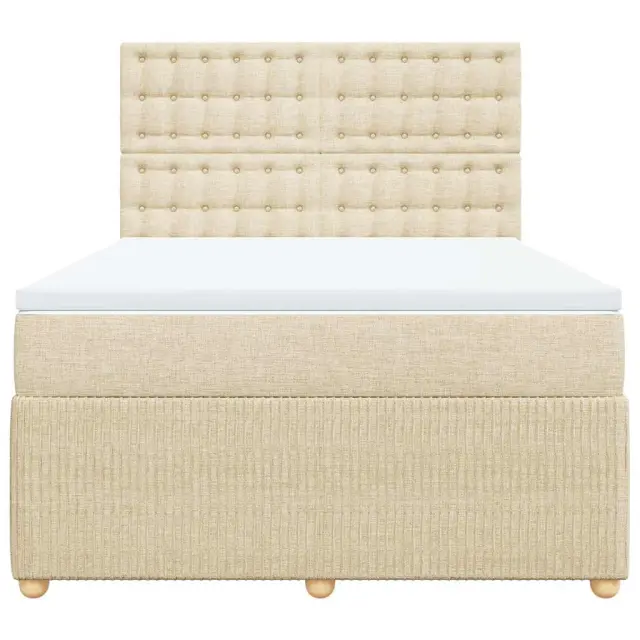 Uporabite to posteljo za uživanje v mirnem spancu! Ponuja maksimalno sprostitev in prijeten spanec. Mehak in trpežen material: Tkanina iz poliestra združuje mehkobo, zračnost in trpežnost ter vam zagotavlja popolno udobje in prijetnost.Ležišče z žepkastimi vzmetmi: Ta vzmetnica z žepkastimi vzmetmi ima posamezne žepkaste vzmeti, ki delujejo neodvisno in zagotavljajo prilagojeno podporo, saj se odzivajo le na pritisk na posameznem območju. Takšna zasnova preprečuje, da bi se ležišče "zvijalo skupaj", in zmanjšuje prenos gibanja v primerjavi s tradicionalnimi ležišči z odprtimi vzmetmi. Vsaka žepkasta vzmet podpira telo posebej.Nastavljiva višina vzglavja: Višina vzglavja je nastavljiva po vaših željah.Udobna vzmetnica: Ta nadvložek za vzmetnico z mehko in zračno površino poveča podporo in udobje ter hkrati podaljša življenjsko dobo vaše vzmetnice. Odstranljiva prevleka omogoča enostavno pranje, zato je vzdrževanje enostavno.Letvice za optimalno podporo: Okvir postelje je opremljen z letvicami, ki zagotavljajo osnovno podporo in zračnost vašega ležišča. Dobro je vedeti:Zaradi higienskih razlogov vzmetnice ni mogoče vrniti po odstranitvi ali odprtju embalaže.Posteljni okvir z vzglavjem:Barva: KremMaterial: Blago (100 % poliester), vezan les, konstruiran lesDimenzije: 200 x 144 x 140,5/150,5 cm (D x Š x V)Utrjene plastične nogicePodporne noge iz trdnega borovega lesaPotrebno sestavljanje: DaVzmetnica:Barva: Bela in kremnaMaterial: Blago (100 % poliester)Material polnila: Žepkaste vzmeti, penaTrdnost: SrednjaDimenzije: 140 x 200 x 20 cm (Š x D x V)Nadvzmetnica:Barva: BelaMaterial: Blago (100 % poliester)Material polnila: PenaDimenzije: 140 x 200 x 5 cm (Š x D x V)Odstranljiva in pralna prevlekaPaket vsebuje:1 x Posteljni okvir1 x Vzglavje1 x Vzmetnica1 x Nadvložek 3292098