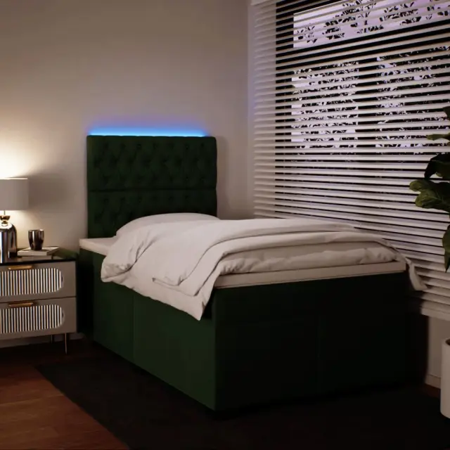 Uporabite to posteljo za uživanje v mirnem spancu! Ponuja maksimalno sprostitev in prijeten spanec. Mehak in udoben material: Vlažna tkanina iz žameta ima mehko in gladko površino, ki zagotavlja prijeten občutek ter vam zagotavlja toploto in popolno udobje.Ležišče z žepkastimi vzmetmi: Ta vzmetnica z žepkastimi vzmetmi ima posamezne žepkaste vzmeti, ki delujejo neodvisno in zagotavljajo prilagojeno podporo, saj se odzivajo le na pritisk na posameznem območju. Takšna zasnova preprečuje, da bi se ležišče "zvijalo skupaj", in zmanjšuje prenos gibanja v primerjavi s tradicionalnimi ležišči z odprtimi vzmetmi. Vsaka žepkasta vzmet podpira telo posebej.LED osvetlitev za prijeten ambient: To posteljo odlikuje LED osvetlitev, ki jo je mogoče preprosto nastaviti in tako ustvariti posebno svetlobno predstavo. Prilagodite lahko načine, barve in svetlost ter tako izboljšate vzdušje v notranjem prostoru.Nastavljiva višina vzglavja: Višina vzglavja je nastavljiva po vaših željah.Udobna vzmetnica: Ta nadvložek za vzmetnico z mehko in zračno površino poveča podporo in udobje ter hkrati podaljša življenjsko dobo vaše vzmetnice. Odstranljiva prevleka omogoča enostavno pranje, zato je vzdrževanje enostavno.Dobro je vedeti:Izdelek ima priključek USB, ki zahteva certificiran vir napajanja 5 V USB (ni priložen).Zaradi higienskih razlogov vzmetnice ni mogoče vrniti po odstranitvi ali odprtju embalaže.Režete lahko samo del s simbolom škarij in samo del z USB bo deloval kot prej.Posteljni okvir z vzglavjem:Barva: Temno zelenaMaterial: Material: Žamet (100 % poliester), inženirski les, vezan les, trden borov lesDimenzije: 190 x 120 x 140,5/150,5 cm (D x Š x V)Utrjene plastične nogicePodporne noge iz trdnega borovega lesaPotrebno sestavljanje: DaVzmetnica:Barva: Bela in temno zelenaMaterial: Žamet (100 % poliester)Material polnila: Žepkaste vzmeti, penaDimenzije: 120 x 190 x 20 cm (Š x D x V)Trdnost: SrednjaNadvzmetnica:Barva: BelaMaterial: Blago (100 % poliester)Material polnila: PenaDimenzije: 120 x 190 x 5 cm (Š x D x V)Odstranljiva in pralna prevlekaLED trak:Dolžina: 55 cmNapetost: DC 5 VDolžina kabla USB : 150 cmDolžina električnega kabla: 30 cmIP ocena: IP65S simbolom za rezanje s škarjamiPaket vsebuje:1 x Posteljni okvir1 x Vzglavje1 x Vzmetnica1 x Nadvložek1 x LED trak 3293167