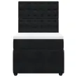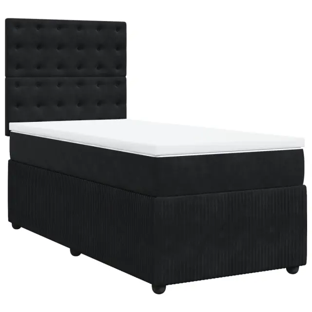 Uporabite to posteljo za uživanje v mirnem spancu! Ponuja maksimalno sprostitev in prijeten spanec. Mehak in udoben material: Vlažna tkanina iz žameta ima mehko in gladko površino, ki zagotavlja prijeten občutek ter vam zagotavlja toploto in popolno udobje.Ležišče z žepkastimi vzmetmi: Ta vzmetnica z žepkastimi vzmetmi ima posamezne žepkaste vzmeti, ki delujejo neodvisno in zagotavljajo prilagojeno podporo, saj se odzivajo le na pritisk na posameznem območju. Takšna zasnova preprečuje, da bi se ležišče "zvijalo skupaj", in zmanjšuje prenos gibanja v primerjavi s tradicionalnimi ležišči z odprtimi vzmetmi. Vsaka žepkasta vzmet podpira telo posebej.Nastavljiva višina vzglavja: Višina vzglavja je nastavljiva po vaših željah.Udobna vzmetnica: Ta nadvložek za vzmetnico z mehko in zračno površino poveča podporo in udobje ter hkrati podaljša življenjsko dobo vaše vzmetnice. Odstranljiva prevleka omogoča enostavno pranje, zato je vzdrževanje enostavno.Letvice za optimalno podporo: Okvir postelje je opremljen z letvicami, ki zagotavljajo osnovno podporo in zračnost vašega ležišča. Dobro je vedeti:Zaradi higienskih razlogov vzmetnice ni mogoče vrniti po odstranitvi ali odprtju embalaže.Posteljni okvir z vzglavjem:Barva: ČrnaMaterial: Žamet (100 % poliester), vezan les, konstruiran lesDimenzije: 200 x 100 x 140,5/150,5 cm (D x Š x V)Utrjene plastične nogicePotrebno sestavljanje: DaVzmetnica:Barva: Bela in črnaMaterial: Žamet (100 % poliester)Material polnila: Žepkaste vzmeti, penaTrdnost: SrednjaDimenzije: 100 x 200 x 20 cm (Š x D x V)Nadvzmetnica:Barva: BelaMaterial: Blago (100 % poliester)Material polnila: PenaDimenzije: 100 x 200 x 5 cm (Š x D x V)Odstranljiva in pralna prevlekaPaket vsebuje:1 x Posteljni okvir1 x Vzglavje1 x Vzmetnica1 x Nadvložek 3292276