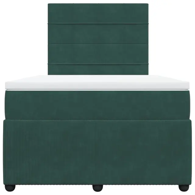 Uporabite to posteljo za uživanje v mirnem spancu! Ponuja maksimalno sprostitev in prijeten spanec. Mehak in udoben material: Vlažna tkanina iz žameta ima mehko in gladko površino, ki zagotavlja prijeten občutek ter vam zagotavlja toploto in popolno udobje.Ležišče z žepkastimi vzmetmi: Ta vzmetnica z žepkastimi vzmetmi ima posamezne žepkaste vzmeti, ki delujejo neodvisno in zagotavljajo prilagojeno podporo, saj se odzivajo le na pritisk na posameznem območju. Takšna zasnova preprečuje, da bi se ležišče "zvijalo skupaj", in zmanjšuje prenos gibanja v primerjavi s tradicionalnimi ležišči z odprtimi vzmetmi. Vsaka žepkasta vzmet podpira telo posebej.Nastavljiva višina vzglavja: Višina vzglavja je nastavljiva po vaših željah.Udobna vzmetnica: Ta nadvložek za vzmetnico z mehko in zračno površino poveča podporo in udobje ter hkrati podaljša življenjsko dobo vaše vzmetnice. Odstranljiva prevleka omogoča enostavno pranje, zato je vzdrževanje enostavno.Letvice za optimalno podporo: Okvir postelje je opremljen z letvicami, ki zagotavljajo osnovno podporo in zračnost vašega ležišča. Dobro je vedeti:Zaradi higienskih razlogov vzmetnice ni mogoče vrniti po odstranitvi ali odprtju embalaže.Posteljni okvir z vzglavjem:Barva: Temno zelenaMaterial: Žamet (100 % poliester), vezan les, konstruiran lesDimenzije: 190 x 120 x 140,5/150,5 cm (D x Š x V)Utrjene plastične nogicePodporne noge iz trdnega borovega lesaPotrebno sestavljanje: DaVzmetnica:Barva: Bela in temno zelenaMaterial: Žamet (100 % poliester)Material polnila: Žepkaste vzmeti, penaTrdnost: SrednjaDimenzije: 120 x 190 x 20 cm (Š x D x V)Nadvzmetnica:Barva: BelaMaterial: Blago (100 % poliester)Material polnila: PenaDimenzije: 120 x 190 x 5 cm (Š x D x V)Odstranljiva in pralna prevlekaPaket vsebuje:1 x Posteljni okvir1 x Vzglavje1 x Vzmetnica1 x Nadvložek 3292289