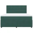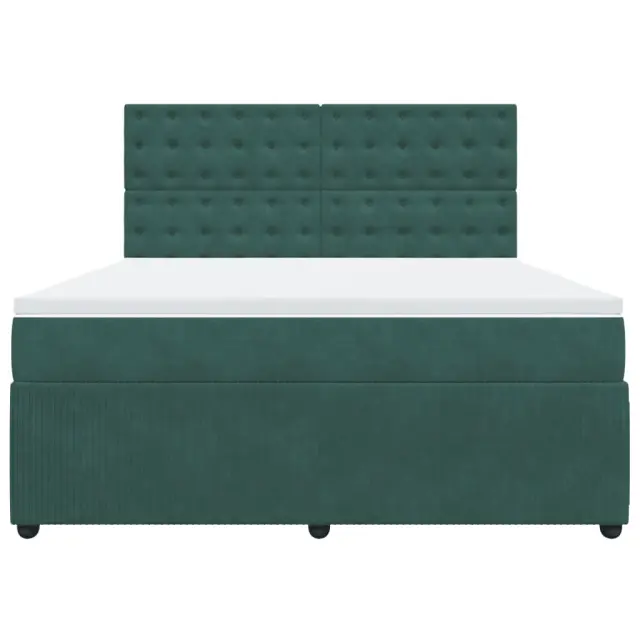 Uporabite to posteljo za uživanje v mirnem spancu! Ponuja maksimalno sprostitev in prijeten spanec. Mehak in udoben material: Vlažna tkanina iz žameta ima mehko in gladko površino, ki zagotavlja prijeten občutek ter vam zagotavlja toploto in popolno udobje.Ležišče z žepkastimi vzmetmi: Ta vzmetnica z žepkastimi vzmetmi ima posamezne žepkaste vzmeti, ki delujejo neodvisno in zagotavljajo prilagojeno podporo, saj se odzivajo le na pritisk na posameznem območju. Takšna zasnova preprečuje, da bi se ležišče "zvijalo skupaj", in zmanjšuje prenos gibanja v primerjavi s tradicionalnimi ležišči z odprtimi vzmetmi. Vsaka žepkasta vzmet podpira telo posebej.Nastavljiva višina vzglavja: Višina vzglavja je nastavljiva po vaših željah.Udobna vzmetnica: Ta nadvložek za vzmetnico z mehko in zračno površino poveča podporo in udobje ter hkrati podaljša življenjsko dobo vaše vzmetnice. Odstranljiva prevleka omogoča enostavno pranje, zato je vzdrževanje enostavno.Letvice za optimalno podporo: Okvir postelje je opremljen z letvicami, ki zagotavljajo osnovno podporo in zračnost vašega ležišča. Dobro je vedeti:Zaradi higienskih razlogov vzmetnice ni mogoče vrniti po odstranitvi ali odprtju embalaže.Posteljni okvir z vzglavjem:Barva: Temno zelenaMaterial: Žamet (100 % poliester), vezan les, konstruiran lesDimenzije: 200 x 180 x 140,5/150,5 cm (D x Š x V)Utrjene plastične nogicePodporne noge iz trdnega borovega lesaPotrebno sestavljanje: DaVzmetnica:Barva: Bela in temno zelenaMaterial: Žamet (100 % poliester)Material polnila: Žepkaste vzmeti, penaTrdnost: SrednjaDimenzije: 180 x 200 x 20 cm (Š x D x V)Nadvzmetnica:Barva: BelaMaterial: Blago (100 % poliester)Material polnila: PenaDimenzije: 180 x 200 x 5 cm (Š x D x V)Odstranljiva in pralna prevlekaPaket vsebuje:1 x Posteljni okvir1 x Vzglavje1 x Vzmetnica1 x Nadvložek 3292421