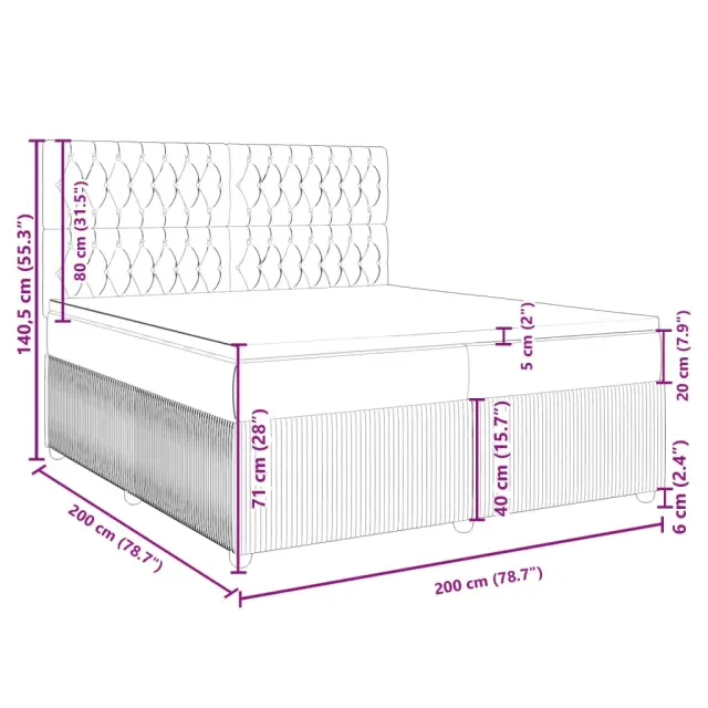 Uporabite to posteljo za uživanje v mirnem spancu! Ponuja maksimalno sprostitev in prijeten spanec. Mehak in udoben material: Vlažna tkanina iz žameta ima mehko in gladko površino, ki zagotavlja prijeten občutek ter vam zagotavlja toploto in popolno udobje.Ležišče z žepkastimi vzmetmi: Ta vzmetnica z žepkastimi vzmetmi ima posamezne žepkaste vzmeti, ki delujejo neodvisno in zagotavljajo prilagojeno podporo, saj se odzivajo le na pritisk na posameznem območju. Takšna zasnova preprečuje, da bi se ležišče "zvijalo skupaj", in zmanjšuje prenos gibanja v primerjavi s tradicionalnimi ležišči z odprtimi vzmetmi. Vsaka žepkasta vzmet podpira telo posebej.Nastavljiva višina vzglavja: Višina vzglavja je nastavljiva po vaših željah.Udobna vzmetnica: Ta nadvložek za vzmetnico z mehko in zračno površino poveča podporo in udobje ter hkrati podaljša življenjsko dobo vaše vzmetnice. Odstranljiva prevleka omogoča enostavno pranje, zato je vzdrževanje enostavno.Letvice za optimalno podporo: Okvir postelje je opremljen z letvicami, ki zagotavljajo osnovno podporo in zračnost vašega ležišča. Dobro je vedeti:Zaradi higienskih razlogov vzmetnice ni mogoče vrniti po odstranitvi ali odprtju embalaže.Posteljni okvir z vzglavjem:Barva: RozaMaterial: Žamet (100 % poliester), vezan les, konstruiran lesDimenzije: 200 x 200 x 140,5/150,5 cm (D x Š x V)Utrjene plastične nogicePodporne noge iz trdnega borovega lesaPotrebno sestavljanje: DaVzmetnica:Barva: Roza in belaMaterial: Žamet (100 % poliester)Material polnila: Žepkaste vzmeti, penaTrdnost: SrednjaDimenzije (vsaka): 100 x 200 x 20 cm (Š x D x V)Nadvzmetnica:Barva: BelaMaterial: Blago (100 % poliester)Material polnila: PenaDimenzije: 200 x 200 x 5 cm (Š x D x V)Odstranljiva in pralna prevlekaPaket vsebuje:1 x Posteljni okvir1 x Vzglavje2 x Vzmetnica1 x Nadvložek 3292441