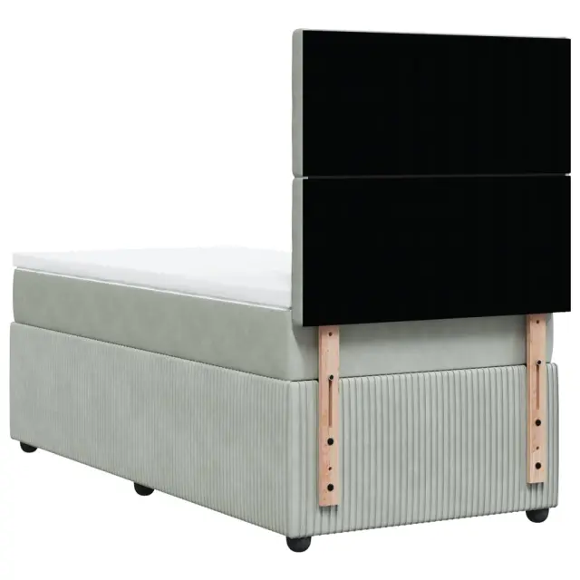 Uporabite to posteljo za uživanje v mirnem spancu! Ponuja maksimalno sprostitev in prijeten spanec. Mehak in udoben material: Vlažna tkanina iz žameta ima mehko in gladko površino, ki zagotavlja prijeten občutek ter vam zagotavlja toploto in popolno udobje. Ležišče z žepkastimi vzmetmi: Ta vzmetnica z žepkastimi vzmetmi ima posamezne žepkaste vzmeti, ki delujejo neodvisno in zagotavljajo prilagojeno podporo, saj se odzivajo le na pritisk na posameznem območju. Takšna zasnova preprečuje, da bi se ležišče "zvijalo skupaj", in zmanjšuje prenos gibanja v primerjavi s tradicionalnimi ležišči z odprtimi vzmetmi. Vsaka žepkasta vzmet podpira telo posebej. LED osvetlitev za prijeten ambient: To posteljo odlikuje LED osvetlitev, ki jo je mogoče preprosto nastaviti in tako ustvariti posebno svetlobno predstavo. Prilagodite lahko načine, barve in svetlost ter tako izboljšate vzdušje v notranjem prostoru. Nastavljiva višina vzglavja: Višina vzglavja je nastavljiva po vaših željah. Udobna vzmetnica: Ta nadvložek za vzmetnico z mehko in zračno površino poveča podporo in udobje ter hkrati podaljša življenjsko dobo vaše vzmetnice. Odstranljiva prevleka omogoča enostavno pranje, zato je vzdrževanje enostavno. Dobro je vedeti: Izdelek ima priključek USB, ki zahteva certificiran vir napajanja 5 V USB (ni priložen). Zaradi higienskih razlogov vzmetnice ni mogoče vrniti po odstranitvi ali odprtju embalaže. Režete lahko samo del s simbolom škarij in samo del z USB bo deloval kot prej.Posteljni okvir z vzglavjem:Barva: Svetlo sivaMaterial: Žamet (100 % poliester), vezan les, konstruiran lesDimenzije: 200 x 100 x 140,5/150,5 cm (D x Š x V)Utrjene plastične nogicePotrebno sestavljanje: DaVzmetnica:Barva: Bela in svetlo sivaMaterial: Žamet (100 % poliester)Material polnila: Žepkaste vzmeti, penaTrdnost: SrednjaDimenzije: 100 x 200 x 20 cm (Š x D x V)Nadvzmetnica:Barva: BelaMaterial: Blago (100 % poliester)Material polnila: PenaDimenzije: 100 x 200 x 5 cm (Š x D x V)Odstranljiva in pralna prevlekaLED trak:Dolžina: 55 cmNapetost: DC 5 VDolžina kabla USB : 150 cmDolžina električnega kabla: 30 cmIP ocena: IP65S simbolom za rezanje s škarjamiPaket vsebuje:1 x Posteljni okvir1 x Vzglavje1 x Vzmetnica1 x Nadvložek1 x LED trak 3294574