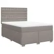 Uporabite to posteljo za uživanje v mirnem spancu! Ponuja maksimalno sprostitev in prijeten spanec. Mehak in trpežen material: Tkanina iz poliestra združuje mehkobo, zračnost in trpežnost ter vam zagotavlja popolno udobje in prijetnost.Ležišče z žepkastimi vzmetmi: Ta vzmetnica z žepkastimi vzmetmi ima posamezne žepkaste vzmeti, ki delujejo neodvisno in zagotavljajo prilagojeno podporo, saj se odzivajo le na pritisk na posameznem območju. Takšna zasnova preprečuje, da bi se ležišče "zvijalo skupaj", in zmanjšuje prenos gibanja v primerjavi s tradicionalnimi ležišči z odprtimi vzmetmi. Vsaka žepkasta vzmet podpira telo posebej.Nastavljiva višina vzglavja: Višina vzglavja je nastavljiva po vaših željah.Udobna vzmetnica: Ta nadvložek za vzmetnico z mehko in zračno površino poveča podporo in udobje ter hkrati podaljša življenjsko dobo vaše vzmetnice. Odstranljiva prevleka omogoča enostavno pranje, zato je vzdrževanje enostavno.Letvice za optimalno podporo: Okvir postelje je opremljen z letvicami, ki zagotavljajo osnovno podporo in zračnost vašega ležišča. Dobro je vedeti:Zaradi higienskih razlogov vzmetnice ni mogoče vrniti po odstranitvi ali odprtju embalaže.Posteljni okvir z vzglavjem:Barva: TaupeMaterial: Tkanina (100 % poliester), vezan les, inženirski les, trdna borovinaDimenzije: 200 x 144 x 140,5/150,5 cm (D x Š x V)Utrjene plastične nogicePodporne noge iz trdnega borovega lesaPotrebno sestavljanje: DaVzmetnica:Barva: Bela in taupeMaterial: Blago (100 % poliester)Material polnila: Žepkaste vzmeti, penaTrdnost: SrednjaDimenzije: 140 x 200 x 20 cm (Š x D x V)Nadvzmetnica:Barva: BelaMaterial: Blago (100 % poliester)Material polnila: PenaDimenzije: 140 x 200 x 5 cm (Š x D x V)Odstranljiva in pralna prevleka Paket vsebuje:1 x Posteljni okvir1 x Vzglavje1 x Vzmetnica1 x Nadvložek 3290529