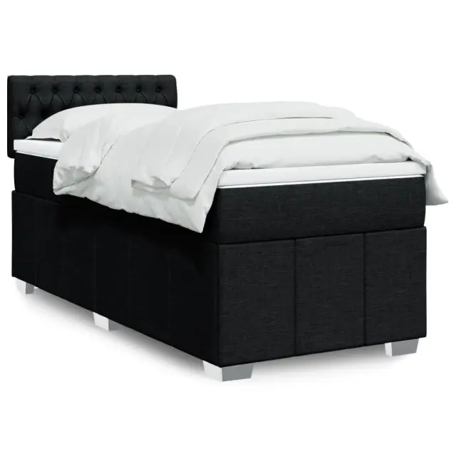 Uporabite to posteljo za uživanje v mirnem spancu! Ponuja maksimalno sprostitev in prijeten spanec. Mehak in trpežen material: Tkanina iz poliestra združuje mehkobo, zračnost in trpežnost ter vam zagotavlja popolno udobje in prijetnost.Ležišče z žepkastimi vzmetmi: Ta vzmetnica z žepkastimi vzmetmi ima posamezne žepkaste vzmeti, ki delujejo neodvisno in zagotavljajo prilagojeno podporo, saj se odzivajo le na pritisk na posameznem območju. Takšna zasnova preprečuje, da bi se ležišče "zvijalo skupaj", in zmanjšuje prenos gibanja v primerjavi s tradicionalnimi ležišči z odprtimi vzmetmi. Vsaka žepkasta vzmet podpira telo posebej.Nastavljiva višina vzglavja: Višina vzglavja je nastavljiva po vaših željah.Udobna vzmetnica: Ta nadvložek za vzmetnico z mehko in zračno površino poveča podporo in udobje ter hkrati podaljša življenjsko dobo vaše vzmetnice. Odstranljiva prevleka omogoča enostavno pranje, zato je vzdrževanje enostavno.Letvice za optimalno podporo: Okvir postelje je opremljen z letvicami, ki zagotavljajo osnovno podporo in zračnost vašega ležišča. Dobro je vedeti:Zaradi higienskih razlogov vzmetnice ni mogoče vrniti po odstranitvi ali odprtju embalaže.Posteljni okvir z vzglavjem:Barva: ČrnaMaterial: Blago (100 % poliester), vezan les, konstruiran lesDimenzije: 200 x 80 x 100,5 cm (D x Š x V)Utrjene plastične nogicePotrebno sestavljanje: DaVzmetnica:Barva: Bela in črnaMaterial: Blago (100 % poliester)Material polnila: Žepkaste vzmeti, penaTrdnost: SrednjaDimenzije: 80 x 200 x 20 cm (Š x D x V)Nadvzmetnica:Barva: BelaMaterial: Blago (100 % poliester)Material polnila: PenaDimenzije: 80 x 200 x 5 cm (Š x D x V)Odstranljiva in pralna prevlekaPaket vsebuje:1 x Posteljni okvir1 x Vzglavje1 x Vzmetnica1 x Nadvložek 3286904