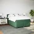 Uporabite to posteljo za uživanje v mirnem spancu! Ponuja maksimalno sprostitev in prijeten spanec. Mehak in udoben material: Vlažna tkanina iz žameta ima mehko in gladko površino, ki zagotavlja prijeten občutek ter vam zagotavlja toploto in popolno udobje.Ležišče z žepkastimi vzmetmi: Ta vzmetnica z žepkastimi vzmetmi ima posamezne žepkaste vzmeti, ki delujejo neodvisno in zagotavljajo prilagojeno podporo, saj se odzivajo le na pritisk na posameznem območju. Takšna zasnova preprečuje, da bi se ležišče "zvijalo skupaj", in zmanjšuje prenos gibanja v primerjavi s tradicionalnimi ležišči z odprtimi vzmetmi. Vsaka žepkasta vzmet podpira telo posebej.Udobna vzmetnica: Ta nadvložek za vzmetnico z mehko in zračno površino poveča podporo in udobje ter hkrati podaljša življenjsko dobo vaše vzmetnice. Odstranljiva prevleka omogoča enostavno pranje, zato je vzdrževanje enostavno.Letvice za optimalno podporo: Okvir postelje je opremljen z letvicami, ki zagotavljajo osnovno podporo in zračnost vašega ležišča. Dobro je vedeti:Zaradi higienskih razlogov vzmetnice ni mogoče vrniti po odstranitvi ali odprtju embalaže.Posteljni okvir z vzglavjem:Barva: Temno zelenaMaterial: Material: Žamet (100 % poliester), vezan les, inženirski les, trden borov lesDimenzije: 200 x 160 x 100,5 cm (D x Š x V)Utrjene plastične nogicePodporne noge iz trdnega borovega lesaPotrebno sestavljanje: DaVzmetnica:Barva: Bela in temno zelenaMaterial: Žamet (100 % poliester)Material polnila: Žepkaste vzmeti, penaTrdnost: SrednjaDimenzije: 160 x 200 x 20 cm (Š x D x V)Nadvzmetnica:Barva: BelaMaterial: Blago (100 % poliester)Material polnila: PenaDimenzije: 160 x 200 x 5 cm (Š x D x V)Odstranljiva in pralna prevleka Paket vsebuje:1 x Posteljni okvir1 x Vzglavje1 x Vzmetnica1 x Nadvložek 3286369