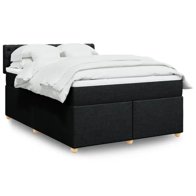 Uporabite to posteljo za uživanje v mirnem spancu! Ponuja maksimalno sprostitev in prijeten spanec. Mehak in trpežen material: Tkanina iz poliestra združuje mehkobo, zračnost in trpežnost ter vam zagotavlja popolno udobje in prijetnost.Ležišče z žepkastimi vzmetmi: Ta vzmetnica z žepkastimi vzmetmi ima posamezne žepkaste vzmeti, ki delujejo neodvisno in zagotavljajo prilagojeno podporo, saj se odzivajo le na pritisk na posameznem območju. Takšna zasnova preprečuje, da bi se ležišče "zvijalo skupaj", in zmanjšuje prenos gibanja v primerjavi s tradicionalnimi ležišči z odprtimi vzmetmi. Vsaka žepkasta vzmet podpira telo posebej.Udobna vzmetnica: Ta nadvložek za vzmetnico z mehko in zračno površino poveča podporo in udobje ter hkrati podaljša življenjsko dobo vaše vzmetnice. Odstranljiva prevleka omogoča enostavno pranje, zato je vzdrževanje enostavno.Letvice za optimalno podporo: Okvir postelje je opremljen z letvicami, ki zagotavljajo osnovno podporo in zračnost vašega ležišča. Dobro je vedeti:Zaradi higienskih razlogov vzmetnice ni mogoče vrniti po odstranitvi ali odprtju embalaže.Posteljni okvir z vzglavjem:Barva: ČrnaMaterial: Tkanina (100 % poliester), vezan les, inženirski les, trdna borovinaDimenzije: 200 x 160 x 100,5 cm (D x Š x V)Utrjene plastične nogicePodporne noge iz trdnega borovega lesaPotrebno sestavljanje: DaVzmetnica:Barva: Bela in črnaMaterial: Blago (100 % poliester)Material polnila: Žepkaste vzmeti, penaTrdnost: SrednjaDimenzije: 160 x 200 x 20 cm (Š x D x V)Nadvzmetnica:Barva: BelaMaterial: Blago (100 % poliester)Material polnila: PenaDimenzije: 160 x 200 x 5 cm (Š x D x V)Odstranljiva in pralna prevlekaPaket vsebuje:1 x Posteljni okvir1 x Vzglavje1 x Vzmetnica1 x Nadvložek 3286740