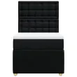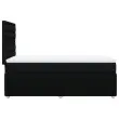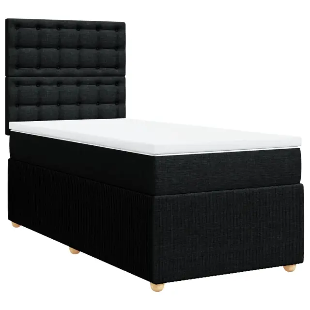 Uporabite to posteljo za uživanje v mirnem spancu! Ponuja maksimalno sprostitev in prijeten spanec. Mehak in trpežen material: Tkanina iz poliestra združuje mehkobo, zračnost in trpežnost ter vam zagotavlja popolno udobje in prijetnost.Ležišče z žepkastimi vzmetmi: Ta vzmetnica z žepkastimi vzmetmi ima posamezne žepkaste vzmeti, ki delujejo neodvisno in zagotavljajo prilagojeno podporo, saj se odzivajo le na pritisk na posameznem območju. Takšna zasnova preprečuje, da bi se ležišče "zvijalo skupaj", in zmanjšuje prenos gibanja v primerjavi s tradicionalnimi ležišči z odprtimi vzmetmi. Vsaka žepkasta vzmet podpira telo posebej.Nastavljiva višina vzglavja: Višina vzglavja je nastavljiva po vaših željah.Udobna vzmetnica: Ta nadvložek za vzmetnico z mehko in zračno površino poveča podporo in udobje ter hkrati podaljša življenjsko dobo vaše vzmetnice. Odstranljiva prevleka omogoča enostavno pranje, zato je vzdrževanje enostavno.Letvice za optimalno podporo: Okvir postelje je opremljen z letvicami, ki zagotavljajo osnovno podporo in zračnost vašega ležišča. Dobro je vedeti:Zaradi higienskih razlogov vzmetnice ni mogoče vrniti po odstranitvi ali odprtju embalaže.Posteljni okvir z vzglavjem:Barva: ČrnaMaterial: Blago (100 % poliester), vezan les, konstruiran lesDimenzije: 200 x 80 x 140,5/150,5 cm (D x Š x V)Utrjene plastične nogicePotrebno sestavljanje: DaVzmetnica:Barva: Bela in črnaMaterial: Blago (100 % poliester)Material polnila: Žepkaste vzmeti, penaTrdnost: SrednjaDimenzije: 80 x 200 x 20 cm (Š x D x V)Nadvzmetnica:Barva: BelaMaterial: Blago (100 % poliester)Material polnila: PenaDimenzije: 80 x 200 x 5 cm (Š x D x V)Odstranljiva in pralna prevlekaPaket vsebuje:1 x Posteljni okvir1 x Vzglavje1 x Vzmetnica1 x Nadvložek 3291899