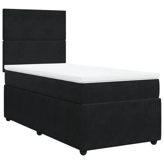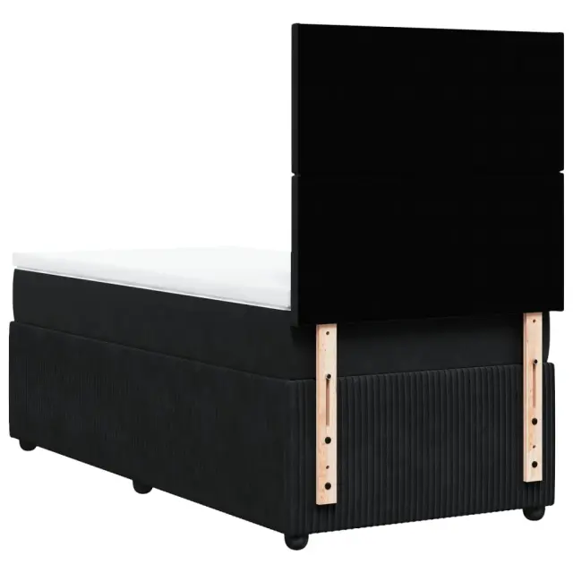Uporabite to posteljo za uživanje v mirnem spancu! Ponuja maksimalno sprostitev in prijeten spanec. Mehak in udoben material: Vlažna tkanina iz žameta ima mehko in gladko površino, ki zagotavlja prijeten občutek ter vam zagotavlja toploto in popolno udobje.Ležišče z žepkastimi vzmetmi: Ta vzmetnica z žepkastimi vzmetmi ima posamezne žepkaste vzmeti, ki delujejo neodvisno in zagotavljajo prilagojeno podporo, saj se odzivajo le na pritisk na posameznem območju. Takšna zasnova preprečuje, da bi se ležišče "zvijalo skupaj", in zmanjšuje prenos gibanja v primerjavi s tradicionalnimi ležišči z odprtimi vzmetmi. Vsaka žepkasta vzmet podpira telo posebej.Nastavljiva višina vzglavja: Višina vzglavja je nastavljiva po vaših željah.Udobna vzmetnica: Ta nadvložek za vzmetnico z mehko in zračno površino poveča podporo in udobje ter hkrati podaljša življenjsko dobo vaše vzmetnice. Odstranljiva prevleka omogoča enostavno pranje, zato je vzdrževanje enostavno.Letvice za optimalno podporo: Okvir postelje je opremljen z letvicami, ki zagotavljajo osnovno podporo in zračnost vašega ležišča. Dobro je vedeti:Zaradi higienskih razlogov vzmetnice ni mogoče vrniti po odstranitvi ali odprtju embalaže.Posteljni okvir z vzglavjem:Barva: ČrnaMaterial: Žamet (100 % poliester), vezan les, konstruiran lesDimenzije: 190 x 90 x 140,5/150,5 cm (D x Š x V)Utrjene plastične nogicePotrebno sestavljanje: DaVzmetnica:Barva: Bela in črnaMaterial: Žamet (100 % poliester)Material polnila: Žepkaste vzmeti, penaTrdnost: SrednjaDimenzije: 90 x 190 x 20 cm (Š x D x V)Nadvzmetnica:Barva: BelaMaterial: Blago (100 % poliester)Material polnila: PenaDimenzije: 90 x 190 x 5 cm (Š x D x V)Odstranljiva in pralna prevlekaPaket vsebuje:1 x Posteljni okvir1 x Vzglavje1 x Vzmetnica1 x Nadvložek 3292210