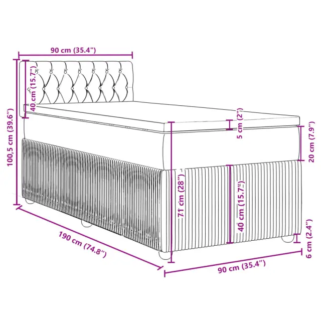 Uporabite to posteljo za uživanje v mirnem spancu! Ponuja maksimalno sprostitev in prijeten spanec. Mehak in udoben material: Vlažna tkanina iz žameta ima mehko in gladko površino, ki zagotavlja prijeten občutek ter vam zagotavlja toploto in popolno udobje.Ležišče z žepkastimi vzmetmi: Ta vzmetnica z žepkastimi vzmetmi ima posamezne žepkaste vzmeti, ki delujejo neodvisno in zagotavljajo prilagojeno podporo, saj se odzivajo le na pritisk na posameznem območju. Takšna zasnova preprečuje, da bi se ležišče "zvijalo skupaj", in zmanjšuje prenos gibanja v primerjavi s tradicionalnimi ležišči z odprtimi vzmetmi. Vsaka žepkasta vzmet podpira telo posebej.LED osvetlitev za prijeten ambient: To posteljo odlikuje LED osvetlitev, ki jo je mogoče preprosto nastaviti in tako ustvariti posebno svetlobno predstavo. Prilagodite lahko načine, barve in svetlost ter tako izboljšate vzdušje v notranjem prostoru.Udobna vzmetnica: Ta nadvložek za vzmetnico z mehko in zračno površino poveča podporo in udobje ter hkrati podaljša življenjsko dobo vaše vzmetnice. Odstranljiva prevleka omogoča enostavno pranje, zato je vzdrževanje enostavno. Dobro je vedeti:Izdelek ima priključek USB, ki zahteva certificiran vir napajanja 5 V USB (ni priložen).Zaradi higienskih razlogov vzmetnice ni mogoče vrniti po odstranitvi ali odprtju embalaže.Režete lahko samo del s simbolom škarij in samo del z USB bo deloval kot prej.Posteljni okvir z vzglavjem:Barva: ModraMaterial: Žamet (100 % poliester), vezan les, konstruiran lesDimenzije: 190 x 90 x 100,5 cm (D x Š x V)Utrjene plastične nogicePotrebno sestavljanje: DaVzmetnica:Barva: Bela in temno modraMaterial: Žamet (100 % poliester)Material polnila: Žepkaste vzmeti, penaTrdnost: SrednjaDimenzije: 90 x 190 x 20 cm (Š x D x V)Nadvzmetnica:Barva: BelaMaterial: Blago (100 % poliester)Material polnila: PenaDimenzije: 90 x 190 x 5 cm (Š x D x V)Odstranljiva in pralna prevlekaLED trak:Dolžina: 55 cmNapetost: DC 5 VDolžina kabla USB : 150 cmDolžina električnega kabla: 30 cmIP ocena: IP65S simbolom za rezanje s škarjamiPaket vsebuje:1 x Posteljni okvir1 x Vzglavje1 x Vzmetnica1 x Nadvložek1 x LED trak 3289924