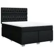 Uporabite to posteljo za uživanje v mirnem spancu! Ponuja maksimalno sprostitev in prijeten spanec. Mehak in trpežen material: Tkanina iz poliestra združuje mehkobo, zračnost in trpežnost ter vam zagotavlja popolno udobje in prijetnost.Ležišče z žepkastimi vzmetmi: Ta vzmetnica z žepkastimi vzmetmi ima posamezne žepkaste vzmeti, ki delujejo neodvisno in zagotavljajo prilagojeno podporo, saj se odzivajo le na pritisk na posameznem območju. Takšna zasnova preprečuje, da bi se ležišče "zvijalo skupaj", in zmanjšuje prenos gibanja v primerjavi s tradicionalnimi ležišči z odprtimi vzmetmi. Vsaka žepkasta vzmet podpira telo posebej.Nastavljiva višina vzglavja: Višina vzglavja je nastavljiva po vaših željah.Udobna vzmetnica: Ta nadvložek za vzmetnico z mehko in zračno površino poveča podporo in udobje ter hkrati podaljša življenjsko dobo vaše vzmetnice. Odstranljiva prevleka omogoča enostavno pranje, zato je vzdrževanje enostavno.Letvice za optimalno podporo: Okvir postelje je opremljen z letvicami, ki zagotavljajo osnovno podporo in zračnost vašega ležišča. Dobro je vedeti:Zaradi higienskih razlogov vzmetnice ni mogoče vrniti po odstranitvi ali odprtju embalaže.Posteljni okvir z vzglavjem:Barva: ČrnaMaterial: Tkanina (100 % poliester), vezan les, inženirski les, trdna borovinaDimenzije: 200 x 144 x 140,5/150,5 cm (D x Š x V)Utrjene plastične nogicePodporne noge iz trdnega borovega lesaPotrebno sestavljanje: DaVzmetnica:Barva: Bela in črnaMaterial: Blago (100 % poliester)Material polnila: Žepkaste vzmeti, penaTrdnost: SrednjaDimenzije: 140 x 200 x 20 cm (Š x D x V)Nadvzmetnica:Barva: BelaMaterial: Blago (100 % poliester)Material polnila: PenaDimenzije: 140 x 200 x 5 cm (Š x D x V)Odstranljiva in pralna prevleka Paket vsebuje:1 x Posteljni okvir1 x Vzglavje1 x Vzmetnica1 x Nadvložek 3290520