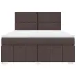 Uporabite to posteljo za uživanje v mirnem spancu! Ponuja maksimalno sprostitev in prijeten spanec. Mehak in trpežen material: Tkanina iz poliestra združuje mehkobo, zračnost in trpežnost ter vam zagotavlja popolno udobje in prijetnost.Ležišče z žepkastimi vzmetmi: Ta vzmetnica z žepkastimi vzmetmi ima posamezne žepkaste vzmeti, ki delujejo neodvisno in zagotavljajo prilagojeno podporo, saj se odzivajo le na pritisk na posameznem območju. Takšna zasnova preprečuje, da bi se ležišče "zvijalo skupaj", in zmanjšuje prenos gibanja v primerjavi s tradicionalnimi ležišči z odprtimi vzmetmi. Vsaka žepkasta vzmet podpira telo posebej.Nastavljiva višina vzglavja: Višina vzglavja je nastavljiva po vaših željah.Udobna vzmetnica: Ta nadvložek za vzmetnico z mehko in zračno površino poveča podporo in udobje ter hkrati podaljša življenjsko dobo vaše vzmetnice. Odstranljiva prevleka omogoča enostavno pranje, zato je vzdrževanje enostavno.Letvice za optimalno podporo: Okvir postelje je opremljen z letvicami, ki zagotavljajo osnovno podporo in zračnost vašega ležišča. Dobro je vedeti:Zaradi higienskih razlogov vzmetnice ni mogoče vrniti po odstranitvi ali odprtju embalaže.Posteljni okvir z vzglavjem:Barva: Temno rjavaMaterial: Blago (100 % poliester), vezan les, konstruiran lesDimenzije: 200 x 180 x 140,5/150,5 cm (D x Š x V)Utrjene plastične nogicePodporne noge iz trdnega borovega lesaPotrebno sestavljanje: DaVzmetnica:Barva: Bela in temno rjavaMaterial: Blago (100 % poliester)Material polnila: Žepkaste vzmeti, penaTrdnost: SrednjaDimenzije: 180 x 200 x 20 cm (Š x D x V)Nadvzmetnica:Barva: BelaMaterial: Blago (100 % poliester)Material polnila: PenaDimenzije: 180 x 200 x 5 cm (Š x D x V)Odstranljiva in pralna prevlekaPaket vsebuje:1 x Posteljni okvir1 x Vzglavje1 x Vzmetnica1 x Nadvložek 3291743
