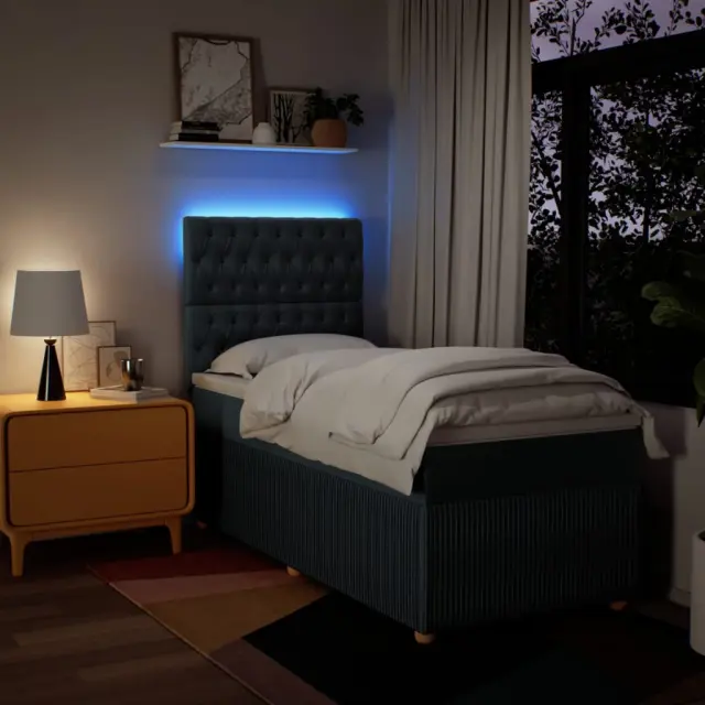 Uporabite to posteljo za uživanje v mirnem spancu! Ponuja maksimalno sprostitev in prijeten spanec. Mehak in trpežen material: Tkanina iz poliestra združuje mehkobo, zračnost in trpežnost ter vam zagotavlja popolno udobje in prijetnost. Ležišče z žepkastimi vzmetmi: Ta vzmetnica z žepkastimi vzmetmi ima posamezne žepkaste vzmeti, ki delujejo neodvisno in zagotavljajo prilagojeno podporo, saj se odzivajo le na pritisk na posameznem območju. Takšna zasnova preprečuje, da bi se ležišče "zvijalo skupaj", in zmanjšuje prenos gibanja v primerjavi s tradicionalnimi ležišči z odprtimi vzmetmi. Vsaka žepkasta vzmet podpira telo posebej. LED osvetlitev za prijeten ambient: To posteljo odlikuje LED osvetlitev, ki jo je mogoče preprosto nastaviti in tako ustvariti posebno svetlobno predstavo. Prilagodite lahko načine, barve in svetlost ter tako izboljšate vzdušje v notranjem prostoru. Nastavljiva višina vzglavja: Višina vzglavja je nastavljiva po vaših željah. Udobna vzmetnica: Ta nadvložek za vzmetnico z mehko in zračno površino poveča podporo in udobje ter hkrati podaljša življenjsko dobo vaše vzmetnice. Odstranljiva prevleka omogoča enostavno pranje, zato je vzdrževanje enostavno. Dobro je vedeti: Izdelek ima priključek USB, ki zahteva certificiran vir napajanja 5 V USB (ni priložen). Zaradi higienskih razlogov vzmetnice ni mogoče vrniti po odstranitvi ali odprtju embalaže. Režete lahko samo del s simbolom škarij in samo del z USB bo deloval kot prej.Posteljni okvir z vzglavjem:Barva: ModraMaterial: Blago (100 % poliester), vezan les, konstruiran lesDimenzije: 200 x 90 x 140,5/150,5 cm (D x Š x V)Utrjene plastične nogicePotrebno sestavljanje: DaVzmetnica:Barva: Bela in modraMaterial: Blago (100 % poliester)Material polnila: Žepkaste vzmeti, penaTrdnost: SrednjaDimenzije: 90 x 200 x 20 cm (Š x D x V)Nadvzmetnica:Barva: BelaMaterial: Blago (100 % poliester)Material polnila: PenaDimenzije: 90 x 200 x 5 cm (Š x D x V)Odstranljiva in pralna prevlekaLED trak:Dolžina: 55 cmNapetost: DC 5 VDolžina kabla USB : 150 cmDolžina električnega kabla: 30 cmIP ocena: IP65S simbolom za rezanje s škarjamiPaket vsebuje:1 x Posteljni okvir1 x Vzglavje1 x Vzmetnica1 x Nadvložek1 x LED trak 3294252