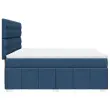 Uporabite to posteljo za uživanje v mirnem spancu! Ponuja maksimalno sprostitev in prijeten spanec. Mehak in trpežen material: Tkanina iz poliestra združuje mehkobo, zračnost in trpežnost ter vam zagotavlja popolno udobje in prijetnost.Ležišče z žepkastimi vzmetmi: Ta vzmetnica z žepkastimi vzmetmi ima posamezne žepkaste vzmeti, ki delujejo neodvisno in zagotavljajo prilagojeno podporo, saj se odzivajo le na pritisk na posameznem območju. Takšna zasnova preprečuje, da bi se ležišče "zvijalo skupaj", in zmanjšuje prenos gibanja v primerjavi s tradicionalnimi ležišči z odprtimi vzmetmi. Vsaka žepkasta vzmet podpira telo posebej.Nastavljiva višina vzglavja: Višina vzglavja je nastavljiva po vaših željah.Udobna vzmetnica: Ta nadvložek za vzmetnico z mehko in zračno površino poveča podporo in udobje ter hkrati podaljša življenjsko dobo vaše vzmetnice. Odstranljiva prevleka omogoča enostavno pranje, zato je vzdrževanje enostavno.Letvice za optimalno podporo: Okvir postelje je opremljen z letvicami, ki zagotavljajo osnovno podporo in zračnost vašega ležišča. Dobro je vedeti:Zaradi higienskih razlogov vzmetnice ni mogoče vrniti po odstranitvi ali odprtju embalaže.Posteljni okvir z vzglavjem:Barva: Modra Material: Blago (100 % poliester), vezan les, konstruiran lesDimenzije: 200 x 180 x 140,5/150,5 cm (D x Š x V)Utrjene plastične nogicePodporne noge iz trdnega borovega lesaPotrebno sestavljanje: DaVzmetnica:Barva: Bela in modraMaterial: Blago (100 % poliester)Material polnila: Žepkaste vzmeti, penaTrdnost: SrednjaDimenzije: 180 x 200 x 20 cm (Š x D x V)Nadvzmetnica:Barva: BelaMaterial: Blago (100 % poliester)Material polnila: PenaDimenzije: 180 x 200 x 5 cm (Š x D x V)Odstranljiva in pralna prevlekaPaket vsebuje:1 x Posteljni okvir1 x Vzglavje1 x Vzmetnica1 x Nadvložek 3291760