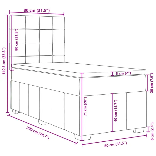 Uporabite to posteljo za uživanje v mirnem spancu! Ponuja maksimalno sprostitev in prijeten spanec. Mehak in trpežen material: Tkanina iz poliestra združuje mehkobo, zračnost in trpežnost ter vam zagotavlja popolno udobje in prijetnost.Ležišče z žepkastimi vzmetmi: Ta vzmetnica z žepkastimi vzmetmi ima posamezne žepkaste vzmeti, ki delujejo neodvisno in zagotavljajo prilagojeno podporo, saj se odzivajo le na pritisk na posameznem območju. Takšna zasnova preprečuje, da bi se ležišče "zvijalo skupaj", in zmanjšuje prenos gibanja v primerjavi s tradicionalnimi ležišči z odprtimi vzmetmi. Vsaka žepkasta vzmet podpira telo posebej.Nastavljiva višina vzglavja: Višina vzglavja je nastavljiva po vaših željah.Udobna vzmetnica: Ta nadvložek za vzmetnico z mehko in zračno površino poveča podporo in udobje ter hkrati podaljša življenjsko dobo vaše vzmetnice. Odstranljiva prevleka omogoča enostavno pranje, zato je vzdrževanje enostavno.Letvice za optimalno podporo: Okvir postelje je opremljen z letvicami, ki zagotavljajo osnovno podporo in zračnost vašega ležišča. Dobro je vedeti:Zaradi higienskih razlogov vzmetnice ni mogoče vrniti po odstranitvi ali odprtju embalaže.Posteljni okvir z vzglavjem:Barva: KremMaterial: Blago (100 % poliester), vezan les, konstruiran lesDimenzije: 200 x 80 x 140,5/150,5 cm (D x Š x V)Utrjene plastične nogicePotrebno sestavljanje: DaVzmetnica:Barva: Bela in kremnaMaterial: Blago (100 % poliester)Material polnila: Žepkaste vzmeti, penaTrdnost: SrednjaDimenzije: 80 x 200 x 20 cm (Š x D x V)Nadvzmetnica:Barva: BelaMaterial: Blago (100 % poliester)Material polnila: PenaDimenzije: 80 x 200 x 5 cm (Š x D x V)Odstranljiva in pralna prevlekaPaket vsebuje:1 x Posteljni okvir1 x Vzglavje1 x Vzmetnica1 x Nadvložek 3291500