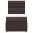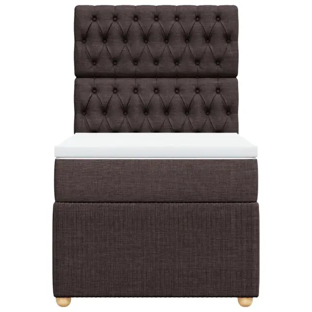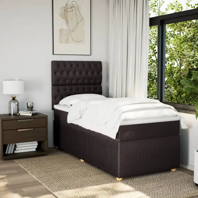 Uporabite to posteljo za uživanje v mirnem spancu! Ponuja maksimalno sprostitev in prijeten spanec. Mehak in trpežen material: Tkanina iz poliestra združuje mehkobo, zračnost in trpežnost ter vam zagotavlja popolno udobje in prijetnost.Ležišče z žepkastimi vzmetmi: Ta vzmetnica z žepkastimi vzmetmi ima posamezne žepkaste vzmeti, ki delujejo neodvisno in zagotavljajo prilagojeno podporo, saj se odzivajo le na pritisk na posameznem območju. Takšna zasnova preprečuje, da bi se ležišče "zvijalo skupaj", in zmanjšuje prenos gibanja v primerjavi s tradicionalnimi ležišči z odprtimi vzmetmi. Vsaka žepkasta vzmet podpira telo posebej.Nastavljiva višina vzglavja: Višina vzglavja je nastavljiva po vaših željah.Udobna vzmetnica: Ta nadvložek za vzmetnico z mehko in zračno površino poveča podporo in udobje ter hkrati podaljša življenjsko dobo vaše vzmetnice. Odstranljiva prevleka omogoča enostavno pranje, zato je vzdrževanje enostavno.Letvice za optimalno podporo: Okvir postelje je opremljen z letvicami, ki zagotavljajo osnovno podporo in zračnost vašega ležišča. Dobro je vedeti:Zaradi higienskih razlogov vzmetnice ni mogoče vrniti po odstranitvi ali odprtju embalaže.Posteljni okvir z vzglavjem:Barva: Temno rjavaMaterial: Blago (100 % poliester), vezan les, konstruiran lesDimenzije: 200 x 80 x 140,5/150,5 cm (D x Š x V)Utrjene plastične nogicePotrebno sestavljanje: DaVzmetnica:Barva: Bela in temno rjavaMaterial: Blago (100 % poliester)Material polnila: Žepkaste vzmeti, penaTrdnost: SrednjaDimenzije: 80 x 200 x 20 cm (Š x D x V)Nadvzmetnica:Barva: BelaMaterial: Blago (100 % poliester)Material polnila: PenaDimenzije: 80 x 200 x 5 cm (Š x D x V)Odstranljiva in pralna prevlekaPaket vsebuje:1 x Posteljni okvir1 x Vzglavje1 x Vzmetnica1 x Nadvložek 3291893