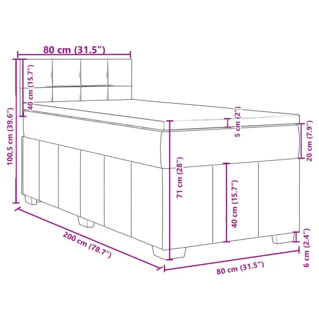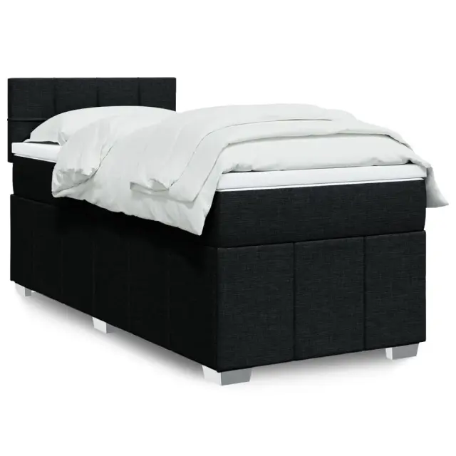 Uporabite to posteljo za uživanje v mirnem spancu! Ponuja maksimalno sprostitev in prijeten spanec. Mehak in trpežen material: Tkanina iz poliestra združuje mehkobo, zračnost in trpežnost ter vam zagotavlja popolno udobje in prijetnost.Ležišče z žepkastimi vzmetmi: Ta vzmetnica z žepkastimi vzmetmi ima posamezne žepkaste vzmeti, ki delujejo neodvisno in zagotavljajo prilagojeno podporo, saj se odzivajo le na pritisk na posameznem območju. Takšna zasnova preprečuje, da bi se ležišče "zvijalo skupaj", in zmanjšuje prenos gibanja v primerjavi s tradicionalnimi ležišči z odprtimi vzmetmi. Vsaka žepkasta vzmet podpira telo posebej.Nastavljiva višina vzglavja: Višina vzglavja je nastavljiva po vaših željah.Udobna vzmetnica: Ta nadvložek za vzmetnico z mehko in zračno površino poveča podporo in udobje ter hkrati podaljša življenjsko dobo vaše vzmetnice. Odstranljiva prevleka omogoča enostavno pranje, zato je vzdrževanje enostavno.Letvice za optimalno podporo: Okvir postelje je opremljen z letvicami, ki zagotavljajo osnovno podporo in zračnost vašega ležišča. Dobro je vedeti:Zaradi higienskih razlogov vzmetnice ni mogoče vrniti po odstranitvi ali odprtju embalaže.Posteljni okvir z vzglavjem:Barva: ČrnaMaterial: Blago (100 % poliester), vezan les, konstruiran lesDimenzije: 200 x 80 x 100,5 cm (D x Š x V)Utrjene plastične nogicePotrebno sestavljanje: DaVzmetnica:Barva: Bela in črnaMaterial: Blago (100 % poliester)Material polnila: Žepkaste vzmeti, penaTrdnost: SrednjaDimenzije: 80 x 200 x 20 cm (Š x D x V)Nadvzmetnica:Barva: BelaMaterial: Blago (100 % poliester)Material polnila: PenaDimenzije: 80 x 200 x 5 cm (Š x D x V)Odstranljiva in pralna prevlekaPaket vsebuje:1 x Posteljni okvir1 x Vzglavje1 x Vzmetnica1 x Nadvložek 3286897