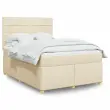 Uporabite to posteljo za uživanje v mirnem spancu! Ponuja maksimalno sprostitev in prijeten spanec. Mehak in trpežen material: Tkanina iz poliestra združuje mehkobo, zračnost in trpežnost ter vam zagotavlja popolno udobje in prijetnost.Ležišče z žepkastimi vzmetmi: Ta vzmetnica z žepkastimi vzmetmi ima posamezne žepkaste vzmeti, ki delujejo neodvisno in zagotavljajo prilagojeno podporo, saj se odzivajo le na pritisk na posameznem območju. Takšna zasnova preprečuje, da bi se ležišče "zvijalo skupaj", in zmanjšuje prenos gibanja v primerjavi s tradicionalnimi ležišči z odprtimi vzmetmi. Vsaka žepkasta vzmet podpira telo posebej.Nastavljiva višina vzglavja: Višina vzglavja je nastavljiva po vaših željah.Udobna vzmetnica: Ta nadvložek za vzmetnico z mehko in zračno površino poveča podporo in udobje ter hkrati podaljša življenjsko dobo vaše vzmetnice. Odstranljiva prevleka omogoča enostavno pranje, zato je vzdrževanje enostavno.Letvice za optimalno podporo: Okvir postelje je opremljen z letvicami, ki zagotavljajo osnovno podporo in zračnost vašega ležišča. Dobro je vedeti:Zaradi higienskih razlogov vzmetnice ni mogoče vrniti po odstranitvi ali odprtju embalaže.Posteljni okvir z vzglavjem:Barva: KremMaterial: Blago (100 % poliester), vezan les, konstruiran lesDimenzije: 200 x 160 x 140,5/150,5 cm (D x Š x V)Utrjene plastične nogicePodporne noge iz trdnega borovega lesaPotrebno sestavljanje: DaVzmetnica:Barva: Bela in kremnaMaterial: Blago (100 % poliester)Material polnila: Žepkaste vzmeti, penaTrdnost: SrednjaDimenzije: 160 x 200 x 20 cm (Š x D x V)Nadvzmetnica:Barva: BelaMaterial: Blago (100 % poliester)Material polnila: PenaDimenzije: 160 x 200 x 5 cm (Š x D x V)Odstranljiva in pralna prevlekaPaket vsebuje:1 x Posteljni okvir1 x Vzglavje1 x Vzmetnica1 x Nadvložek 3291336