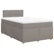 Uporabite to posteljo za uživanje v mirnem spancu! Ponuja maksimalno sprostitev in prijeten spanec. Mehak in trpežen material: Tkanina iz poliestra združuje mehkobo, zračnost in trpežnost ter vam zagotavlja popolno udobje in prijetnost.Ležišče z žepkastimi vzmetmi: Ta vzmetnica z žepkastimi vzmetmi ima posamezne žepkaste vzmeti, ki delujejo neodvisno in zagotavljajo prilagojeno podporo, saj se odzivajo le na pritisk na posameznem območju. Takšna zasnova preprečuje, da bi se ležišče "zvijalo skupaj", in zmanjšuje prenos gibanja v primerjavi s tradicionalnimi ležišči z odprtimi vzmetmi. Vsaka žepkasta vzmet podpira telo posebej.Udobna vzmetnica: Ta nadvložek za vzmetnico z mehko in zračno površino poveča podporo in udobje ter hkrati podaljša življenjsko dobo vaše vzmetnice. Odstranljiva prevleka omogoča enostavno pranje, zato je vzdrževanje enostavno.Letvice za optimalno podporo: Okvir postelje je opremljen z letvicami, ki zagotavljajo osnovno podporo in zračnost vašega ležišča. Dobro je vedeti:Zaradi higienskih razlogov vzmetnice ni mogoče vrniti po odstranitvi ali odprtju embalaže.Posteljni okvir z vzglavjem:Barva: TaupeMaterial: Tkanina (100 % poliester), vezan les, inženirski les, trdna borovinaDimenzije: 200 x 120 x 100,5 cm (D x Š x V)Utrjene plastične nogicePodporne noge iz trdnega borovega lesaPotrebno sestavljanje: DaVzmetnica:Barva: Bela in taupeMaterial: Blago (100 % poliester)Material polnila: Žepkaste vzmeti, penaTrdnost: SrednjaDimenzije: 120 x 200 x 20 cm (Š x D x V)Nadvzmetnica:Barva: BelaMaterial: Blago (100 % poliester)Material polnila: PenaDimenzije: 120 x 200 x 5 cm (D x Š x V)Odstranljiva in pralna prevlekaPaket vsebuje:1 x Posteljni okvir1 x Vzglavje1 x Vzmetnica1 x Nadvložek 3286651
