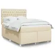 Uporabite to posteljo za uživanje v mirnem spancu! Ponuja maksimalno sprostitev in prijeten spanec.Mehak in trpežen material: Tkanina iz poliestra združuje mehkobo, zračnost in trpežnost ter vam zagotavlja popolno udobje in prijetnost.Ležišče z žepkastimi vzmetmi: Ta vzmetnica z žepkastimi vzmetmi ima posamezne žepkaste vzmeti, ki delujejo neodvisno in zagotavljajo prilagojeno podporo, saj se odzivajo le na pritisk na posameznem območju. Takšna zasnova preprečuje, da bi se ležišče "zvijalo skupaj", in zmanjšuje prenos gibanja v primerjavi s tradicionalnimi ležišči z odprtimi vzmetmi. Vsaka žepkasta vzmet podpira telo posebej.LED osvetlitev za prijeten ambient: To posteljo odlikuje LED osvetlitev, ki jo je mogoče preprosto nastaviti in tako ustvariti posebno svetlobno predstavo. Prilagodite lahko načine, barve in svetlost ter tako izboljšate vzdušje v notranjem prostoru.Nastavljiva višina vzglavja: Višina vzglavja je nastavljiva po vaših željah.Udobna vzmetnica: Ta nadvložek za vzmetnico z mehko in zračno površino poveča podporo in udobje ter hkrati podaljša življenjsko dobo vaše vzmetnice. Odstranljiva prevleka omogoča enostavno pranje, zato je vzdrževanje enostavno.Dobro je vedeti:Izdelek ima priključek USB, ki zahteva certificiran vir napajanja 5 V USB (ni priložen).Zaradi higienskih razlogov vzmetnice ni mogoče vrniti po odstranitvi ali odprtju embalaže.Režete lahko samo del s simbolom škarij in samo del z USB bo deloval kot prej.Posteljni okvir z vzglavjem:Barva: KremMaterial: Tkanina (100 % poliester), inženirski les, vezan les, trdna borovinaDimenzije: 200 x 144 x 140,5/150,5 cm (D x Š x V)Utrjene plastične nogicePodporne noge iz trdnega borovega lesaPotrebno sestavljanje: DaVzmetnica:Barva: Bela in kremnaMaterial: Blago (100 % poliester)Material polnila: Žepkaste vzmeti, penaDimenzije: 140 x 200 x 20 cm (Š x D x V)Trdnost: SrednjaNadvzmetnica:Barva: BelaMaterial: Blago (100 % poliester)Material polnila: PenaDimenzije: 140 x 200 x 5 cm (Š x D x V)Odstranljiva in pralna prevlekaLED trak:Dolžina: 55 cmNapetost: DC 5 VDolžina kabla USB : 150 cmDolžina električnega kabla: 30 cmIP ocena: IP65S simbolom za rezanje s škarjamiPaket vsebuje:1 x Posteljni okvir2 x Vzglavje1 x Vzmetnica1 x Nadvložek1 x LED trak 3292823