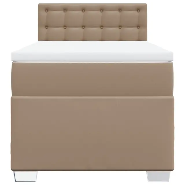 Uporabite to posteljo za uživanje v mirnem spancu! Ponuja maksimalno sprostitev in prijeten spanec. Trpežno umetno usnje: Vrhunsko umetno usnje je zelo vzdržljiv material. Je odporno na madeže, zato ga lahko preprosto čistite z vlažno krpo. Gladka površina mu prav tako daje razkošen videz in lepoto pravega usnja.Ležišče z žepkastimi vzmetmi: Ta vzmetnica z žepkastimi vzmetmi ima posamezne žepkaste vzmeti, ki delujejo neodvisno in zagotavljajo prilagojeno podporo, saj se odzivajo le na pritisk na posameznem območju. Takšna zasnova preprečuje, da bi se ležišče "zvijalo skupaj", in zmanjšuje prenos gibanja v primerjavi s tradicionalnimi ležišči z odprtimi vzmetmi. Vsaka žepkasta vzmet podpira telo posebej.Udobna vzmetnica: Ta nadvložek za vzmetnico z mehko in zračno površino poveča podporo in udobje ter hkrati podaljša življenjsko dobo vaše vzmetnice. Odstranljiva prevleka omogoča enostavno pranje, zato je vzdrževanje enostavno.Udobna opora: To vzglavje za posteljo vam zagotavlja odlično oporo za hrbet, ko sedite na postelji in berete ali gledate filme.Stabilne in vzdržljive noge: Ta postelja je podprta z robustnimi nogami, ki zagotavljajo stabilnost, varnost in trdnost. Dobro je vedeti:Zaradi higienskih razlogov vzmetnice ni mogoče vrniti po odstranitvi ali odprtju embalaže.Posteljni okvir z vzglavjem:Barva: KapučinoMaterial: Umetno usnje (75 % polivinilklorid, 5 % bombaž, 20 % poliester), vezan les, konstruiran lesDimenzije: 200 x 80 x 100,5 cm (D x Š x V)Utrjene plastične nogiceVzmetnica:Barva: Bela in kapučinoMaterial prevleke: Umetno usnje (75 % polivinilklorid, 5 % bombaž, 20 % poliester)Material polnila: Žepkaste vzmeti, penaTrdnost: SrednjaDimenzije: 80 x 200 x 20 cm (Š x D x V)Nadvzmetnica:Barva: BelaMaterial: Blago (100 % poliester)Material polnila: PenaDimenzije: 80 x 200 x 5 cm (Š x D x V)Odstranljiva in pralna prevlekaPaket vsebuje:1 x Posteljni okvir1 x Vzglavje1 x Vzmetnica1 x Nadvložek 3286099