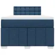 Uporabite to posteljo za uživanje v mirnem spancu! Ponuja maksimalno sprostitev in prijeten spanec. Mehak in trpežen material: Tkanina iz poliestra združuje mehkobo, zračnost in trpežnost ter vam zagotavlja popolno udobje in prijetnost.Ležišče z žepkastimi vzmetmi: Ta vzmetnica z žepkastimi vzmetmi ima posamezne žepkaste vzmeti, ki delujejo neodvisno in zagotavljajo prilagojeno podporo, saj se odzivajo le na pritisk na posameznem območju. Takšna zasnova preprečuje, da bi se ležišče "zvijalo skupaj", in zmanjšuje prenos gibanja v primerjavi s tradicionalnimi ležišči z odprtimi vzmetmi. Vsaka žepkasta vzmet podpira telo posebej.Nastavljiva višina vzglavja: Višina vzglavja je nastavljiva po vaših željah.Udobna vzmetnica: Ta nadvložek za vzmetnico z mehko in zračno površino poveča podporo in udobje ter hkrati podaljša življenjsko dobo vaše vzmetnice. Odstranljiva prevleka omogoča enostavno pranje, zato je vzdrževanje enostavno.Letvice za optimalno podporo: Okvir postelje je opremljen z letvicami, ki zagotavljajo osnovno podporo in zračnost vašega ležišča. Dobro je vedeti:Zaradi higienskih razlogov vzmetnice ni mogoče vrniti po odstranitvi ali odprtju embalaže.Posteljni okvir z vzglavjem:Barva: ModraMaterial: Tkanina (100 % poliester), vezan les, inženirski les, trdna borovinaDimenzije: 190 x 120 x 100,5 cm (D x Š x V)Utrjene plastične nogicePodporne noge iz trdnega borovega lesaPotrebno sestavljanje: DaVzmetnica:Barva: Bela in modraMaterial: Blago (100 % poliester)Material polnila: Žepkaste vzmeti, penaTrdnost: SrednjaDimenzije: 120 x 190 x 20 cm (Š x D x V)Nadvzmetnica:Barva: BelaMaterial: Blago (100 % poliester)Material polnila: PenaDimenzije: 120 x 190 x 5 cm (Š x D x V)Odstranljiva in pralna prevlekaPaket vsebuje:1 x Posteljni okvir1 x Vzglavje1 x Vzmetnica1 x Nadvložek 3287027