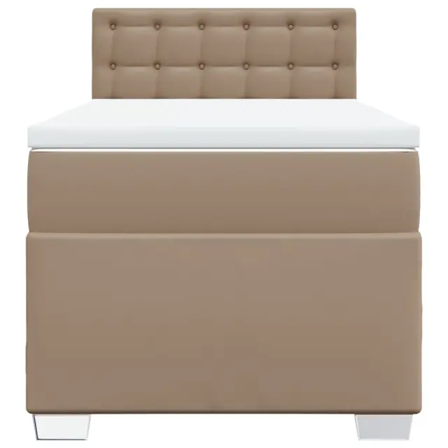 Uporabite to posteljo za uživanje v mirnem spancu! Ponuja maksimalno sprostitev in prijeten spanec. Trpežno umetno usnje: Vrhunsko umetno usnje je zelo vzdržljiv material. Je odporno na madeže, zato ga lahko preprosto čistite z vlažno krpo. Gladka površina mu prav tako daje razkošen videz in lepoto pravega usnja.Ležišče z žepkastimi vzmetmi: Ta vzmetnica z žepkastimi vzmetmi ima posamezne žepkaste vzmeti, ki delujejo neodvisno in zagotavljajo prilagojeno podporo, saj se odzivajo le na pritisk na posameznem območju. Takšna zasnova preprečuje, da bi se ležišče "zvijalo skupaj", in zmanjšuje prenos gibanja v primerjavi s tradicionalnimi ležišči z odprtimi vzmetmi. Vsaka žepkasta vzmet podpira telo posebej.Udobna vzmetnica: Ta nadvložek za vzmetnico z mehko in zračno površino poveča podporo in udobje ter hkrati podaljša življenjsko dobo vaše vzmetnice. Odstranljiva prevleka omogoča enostavno pranje, zato je vzdrževanje enostavno.Udobna opora: To vzglavje za posteljo vam zagotavlja odlično oporo za hrbet, ko sedite na postelji in berete ali gledate filme.Stabilne in vzdržljive noge: Ta postelja je podprta z robustnimi nogami, ki zagotavljajo stabilnost, varnost in trdnost. Dobro je vedeti:Zaradi higienskih razlogov vzmetnice ni mogoče vrniti po odstranitvi ali odprtju embalaže.Posteljni okvir z vzglavjem:Barva: KapučinoMaterial: Umetno usnje (75 % polivinilklorid, 5 % bombaž, 20 % poliester), vezan les, konstruiran lesCelotne dimenzije: 190 x 90 x 100,5 cm (D x Š x V)Utrjene plastične nogiceVzmetnica:Barva: Bela in kapučinoMaterial prevleke: Umetno usnje (75 % polivinilklorid, 5 % bombaž, 20 % poliester)Material polnila: Žepkaste vzmeti, penaTrdnost: SrednjaDimenzije: 90 x 190 x 20 cm (Š x D x V)Nadvzmetnica:Barva: BelaMaterial: Blago (100 % poliester)Material polnila: PenaDimenzije: 90 x 190 x 5 cm (Š x D x V)Odstranljiva in pralna prevleka Paket vsebuje:1 x Posteljni okvir1 x Vzglavje1 x Vzmetnica1 x Nadvložek 3286103