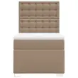 Uporabite to posteljo za uživanje v mirnem spancu! Ponuja maksimalno sprostitev in prijeten spanec. Dolgotrajno in enostavno vzdrževanje: Umetno usnje je zelo trpežen material, ki je odporen na madeže, zato ga zlahka očistite z vlažno krpo. Njegova gladka površina mu daje eleganten videz, ki spominja na pravo usnje.Ležišče z žepkastimi vzmetmi: Ta vzmetnica z žepkastimi vzmetmi ima posamezne žepkaste vzmeti, ki delujejo neodvisno in zagotavljajo prilagojeno podporo, saj se odzivajo le na pritisk na posameznem območju. Takšna zasnova preprečuje, da bi se ležišče "zvijalo skupaj", in zmanjšuje prenos gibanja v primerjavi s tradicionalnimi ležišči z odprtimi vzmetmi. Vsaka žepkasta vzmet podpira telo posebej.Nastavljiva višina vzglavja: Višina vzglavja je nastavljiva po vaših željah.Udobna vzmetnica: Ta nadvložek za vzmetnico z mehko in zračno površino poveča podporo in udobje ter hkrati podaljša življenjsko dobo vaše vzmetnice. Odstranljiva prevleka omogoča enostavno pranje, zato je vzdrževanje enostavno.Letvice za optimalno podporo: Okvir postelje je opremljen z letvicami, ki zagotavljajo osnovno podporo in zračnost vašega ležišča. Dobro je vedeti:Zaradi higienskih razlogov vzmetnice ni mogoče vrniti po odstranitvi ali odprtju embalaže.Posteljni okvir z vzglavjem:Barva: KapučinoMaterial: Umetno usnje (75 % polivinilklorid, 5 % bombaž, 20 % poliester), vezan les, konstruiran lesDimenzije: 200 x 90 x 140,5/150,5 cm (D x Š x V)Utrjene plastične nogicePotrebno sestavljanje: DaVzmetnica:Barva: Bela in kapučinoMaterial: Umetno usnje (75 % polivinilklorid, 5 % bombaž, 20 % poliester)Material polnila: Žepkaste vzmeti, penaTrdnost: SrednjaDimenzije: 90 x 200 x 20 cm (Š x D x V)Nadvzmetnica:Barva: BelaMaterial: Blago (100 % poliester)Material polnila: PenaDimenzije: 90 x 200 x 5 cm (Š x D x V)Odstranljiva in pralna prevlekaPaket vsebuje:1 x Posteljni okvir1 x Vzglavje1 x Vzmetnica1 x Nadvložek 3290707