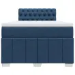 Uporabite to posteljo za uživanje v mirnem spancu! Ponuja maksimalno sprostitev in prijeten spanec. Mehak in trpežen material: Tkanina iz poliestra združuje mehkobo, zračnost in trpežnost ter vam zagotavlja popolno udobje in prijetnost.Ležišče z žepkastimi vzmetmi: Ta vzmetnica z žepkastimi vzmetmi ima posamezne žepkaste vzmeti, ki delujejo neodvisno in zagotavljajo prilagojeno podporo, saj se odzivajo le na pritisk na posameznem območju. Takšna zasnova preprečuje, da bi se ležišče "zvijalo skupaj", in zmanjšuje prenos gibanja v primerjavi s tradicionalnimi ležišči z odprtimi vzmetmi. Vsaka žepkasta vzmet podpira telo posebej.Nastavljiva višina vzglavja: Višina vzglavja je nastavljiva po vaših željah.Udobna vzmetnica: Ta nadvložek za vzmetnico z mehko in zračno površino poveča podporo in udobje ter hkrati podaljša življenjsko dobo vaše vzmetnice. Odstranljiva prevleka omogoča enostavno pranje, zato je vzdrževanje enostavno.Letvice za optimalno podporo: Okvir postelje je opremljen z letvicami, ki zagotavljajo osnovno podporo in zračnost vašega ležišča. Dobro je vedeti:Zaradi higienskih razlogov vzmetnice ni mogoče vrniti po odstranitvi ali odprtju embalaže.Posteljni okvir z vzglavjem:Barva: ModraMaterial: Tkanina (100 % poliester), vezan les, inženirski les, trdna borovinaDimenzije: 190 x 120 x 100,5 cm (D x Š x V)Utrjene plastične nogicePodporne noge iz trdnega borovega lesaPotrebno sestavljanje: DaVzmetnica:Barva: Bela in modraMaterial: Blago (100 % poliester)Material polnila: Žepkaste vzmeti, penaTrdnost: SrednjaDimenzije: 120 x 190 x 20 cm (Š x D x V)Nadvzmetnica:Barva: BelaMaterial: Blago (100 % poliester)Material polnila: PenaDimenzije: 120 x 190 x 5 cm (Š x D x V)Odstranljiva in pralna prevlekaPaket vsebuje:1 x Posteljni okvir1 x Vzglavje1 x Vzmetnica1 x Nadvložek 3287020