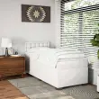 Uporabite to posteljo za uživanje v mirnem spancu! Ponuja maksimalno sprostitev in prijeten spanec. Dolgotrajno in enostavno vzdrževanje: Umetno usnje je zelo trpežen material, ki je odporen na madeže, zato ga zlahka očistite z vlažno krpo. Njegova gladka površina mu daje eleganten videz, ki spominja na pravo usnje.Ležišče z žepkastimi vzmetmi: Ta vzmetnica z žepkastimi vzmetmi ima posamezne žepkaste vzmeti, ki delujejo neodvisno in zagotavljajo prilagojeno podporo, saj se odzivajo le na pritisk na posameznem območju. Takšna zasnova preprečuje, da bi se ležišče "zvijalo skupaj", in zmanjšuje prenos gibanja v primerjavi s tradicionalnimi ležišči z odprtimi vzmetmi. Vsaka žepkasta vzmet podpira telo posebej.LED osvetlitev za prijeten ambient: To posteljo odlikuje LED osvetlitev, ki jo je mogoče preprosto nastaviti in tako ustvariti posebno svetlobno predstavo. Prilagodite lahko načine, barve in svetlost ter tako izboljšate vzdušje v notranjem prostoru.Udobna vzmetnica: Ta nadvložek za vzmetnico z mehko in zračno površino poveča podporo in udobje ter hkrati podaljša življenjsko dobo vaše vzmetnice. Odstranljiva prevleka omogoča enostavno pranje, zato je vzdrževanje enostavno. Dobro je vedeti:Izdelek ima priključek USB, ki zahteva certificiran vir napajanja 5 V USB (ni priložen).Zaradi higienskih razlogov vzmetnice ni mogoče vrniti po odstranitvi ali odprtju embalaže.Režete lahko samo del s simbolom škarij in samo del z USB bo deloval kot prej.Posteljni okvir z vzglavjem:Barva: BelaMaterial: Umetno usnje (75 % polivinilklorid, 5 % bombaž, 20 % poliester), vezan les, konstruiran lesDimenzije: 200 x 100 x 100,5 cm (D x Š x V)Utrjene plastične nogicePotrebno sestavljanje: DaVzmetnica:Barva: BelaMaterial: Umetno usnje (75 % polivinilklorid, 5 % bombaž, 20 % poliester)Material polnila: Žepkaste vzmeti, penaTrdnost: SrednjaDimenzije: 100 x 200 x 20 cm (Š x D x V)Nadvzmetnica:Barva: BelaMaterial: Blago (100 % poliester)Material polnila: PenaDimenzije: 100 x 200 x 5 cm (Š x D x V)Odstranljiva in pralna prevlekaLED trak:Dolžina: 55 cmNapetost: DC 5 VDolžina kabla USB : 150 cmDolžina električnega kabla: 30 cmIP ocena: IP65S simbolom za rezanje s škarjami Paket vsebuje:1 x Posteljni okvir1 x Vzglavje1 x Vzmetnica1 x Nadvložek1 x LED trak 3288409