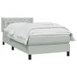 Uporabite to box spring posteljo za uživanje v mirnem spancu! Ponuja maksimalno sprostitev in prijeten spanec. Mehak in udoben material: Vlažna tkanina iz žameta ima mehko in gladko površino, ki zagotavlja prijeten občutek ter vam zagotavlja toploto in popolno udobje.Ležišče z žepkastimi vzmetmi: Ta vzmetnica z žepkastimi vzmetmi ima posamezne žepkaste vzmeti, ki delujejo neodvisno in zagotavljajo prilagojeno podporo, saj se odzivajo le na pritisk na posameznem območju. Takšna zasnova preprečuje, da bi se ležišče "zvijalo skupaj", in zmanjšuje prenos gibanja v primerjavi s tradicionalnimi ležišči z odprtimi vzmetmi. Vsaka žepkasta vzmet podpira telo posebej.Vsestranska vzglavna deska: Ta posteljni okvir je opremljen z vzglavjem, ki zagotavlja odlično oporo hrbtu, ko sedite v postelji in berete ali gledate televizijo, hkrati pa služi tudi kot dekorativni element. Naglavni del je nastavljiv po višini, da ustreza vašim željam.Udobna vzmetnica: Ta nadvložek za vzmetnico z mehko in zračno površino poveča podporo in udobje ter hkrati podaljša življenjsko dobo vaše vzmetnice. Odstranljiva prevleka omogoča enostavno pranje, zato je vzdrževanje enostavno.Podnožje z letvami za optimalno podporo: Za podporo in zračnost ležišča je posteljni okvir opremljen z letvenim dnom. Dobro je vedeti:Iz higienskih razlogov ležišča ne morete vrniti, če je bila embalaža odprta ali odstranjena.Posteljni okvir z vzglavjem:Barva: Svetlo sivaMaterial: Žamet (100 % poliester), vezan les, konstruiran lesDimenzije: 223 x 83 x 78/88 cm (D x Š x V)Vzmetnica:Barva: Bela in svetlo sivaMaterial: Žamet (100 % poliester)Material polnila: Žepkaste vzmeti, penaDimenzije: 80 x 220 x 20 cm (Š x D x V)Nadvzmetnica:Barva: BelaMaterial: Blago (100 % poliester)Material polnila: PenaDimenzije: 80 x 220 x 5 cm (Š x D x V)Odstranljiva in pralna prevlekaPaket vsebuje:1 x Posteljni okvir1 x Vzglavje z ušesi1 x Vzmetnica1 x Nadvložek 3318387