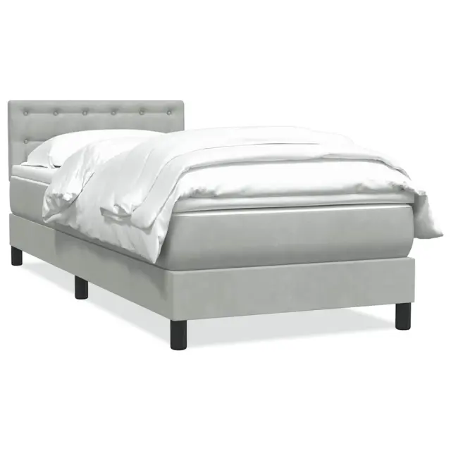 Uporabite to box spring posteljo za uživanje v mirnem spancu! Ponuja maksimalno sprostitev in prijeten spanec. Mehak in udoben material: Vlažna tkanina iz žameta ima mehko in gladko površino, ki zagotavlja prijeten občutek ter vam zagotavlja toploto in popolno udobje.Ležišče z žepkastimi vzmetmi: Ta vzmetnica z žepkastimi vzmetmi ima posamezne žepkaste vzmeti, ki delujejo neodvisno in zagotavljajo prilagojeno podporo, saj se odzivajo le na pritisk na posameznem območju. Takšna zasnova preprečuje, da bi se ležišče "zvijalo skupaj", in zmanjšuje prenos gibanja v primerjavi s tradicionalnimi ležišči z odprtimi vzmetmi. Vsaka žepkasta vzmet podpira telo posebej.Nastavljiva višina vzglavja: Višina vzglavja je nastavljiva po vaših željah.Udobna vzmetnica: Ta nadvložek za vzmetnico z mehko in zračno površino poveča podporo in udobje ter hkrati podaljša življenjsko dobo vaše vzmetnice. Odstranljiva prevleka omogoča enostavno pranje, zato je vzdrževanje enostavno.Letvice za optimalno podporo: Okvir postelje je opremljen z letvicami, ki zagotavljajo osnovno podporo in zračnost vašega ležišča. Dobro je vedeti:Zaradi higienskih razlogov vzmetnice ni mogoče vrniti po odstranitvi ali odprtju embalaže.Posteljni okvir z vzglavjem:Barva: Svetlo sivaMaterial: Žamet (100 % poliester), vezan les, konstruiran lesCelotne dimenzije: 213 x 90 x 78/88 cm (D x Š x V)Potrebno sestavljanje: DaVzmetnica:Barva: Bela in svetlo sivaMaterial: Žamet (100 % poliester)Material polnila: Žepkaste vzmeti, penaDimenzije: 90 x 210 x 20 cm (D x Š x V)Nadvzmetnica:Barva: BelaMaterial nadvložka: Blago (100 % poliester)Material polnila: PenaDimenzije: 90 x 210 x 5 cm (Š x D x V)Paket vsebuje:1 x Posteljni okvir1 x Vzglavje1 x Vzmetnica1 x Nadvložek 3316575