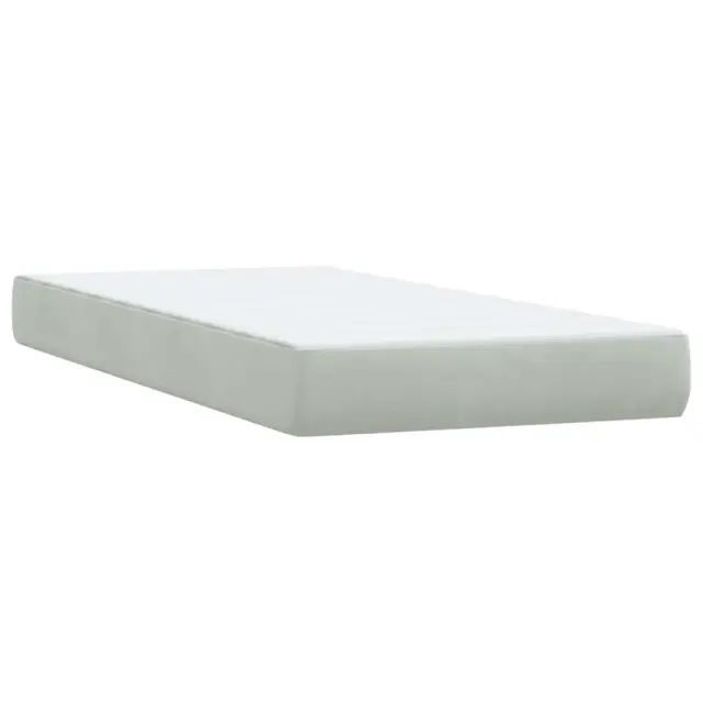 Uporabite to box spring posteljo za uživanje v mirnem spancu! Ponuja maksimalno sprostitev in prijeten spanec. Mehak in udoben material: Vlažna tkanina iz žameta ima mehko in gladko površino, ki zagotavlja prijeten občutek ter vam zagotavlja toploto in popolno udobje.Ležišče z žepkastimi vzmetmi: Ta vzmetnica z žepkastimi vzmetmi ima posamezne žepkaste vzmeti, ki delujejo neodvisno in zagotavljajo prilagojeno podporo, saj se odzivajo le na pritisk na posameznem območju. Takšna zasnova preprečuje, da bi se ležišče "zvijalo skupaj", in zmanjšuje prenos gibanja v primerjavi s tradicionalnimi ležišči z odprtimi vzmetmi. Vsaka žepkasta vzmet podpira telo posebej.Vsestranska vzglavna deska: Ta posteljni okvir je opremljen z vzglavjem, ki zagotavlja odlično oporo hrbtu, ko sedite v postelji in berete ali gledate televizijo, hkrati pa služi tudi kot dekorativni element. Naglavni del je nastavljiv po višini, da ustreza vašim željam.Udobna vzmetnica: Ta nadvložek za vzmetnico z mehko in zračno površino poveča podporo in udobje ter hkrati podaljša življenjsko dobo vaše vzmetnice. Odstranljiva prevleka omogoča enostavno pranje, zato je vzdrževanje enostavno.Podnožje z letvami za optimalno podporo: Za podporo in zračnost ležišča je posteljni okvir opremljen z letvenim dnom. Dobro je vedeti:Iz higienskih razlogov ležišča ne morete vrniti, če je bila embalaža odprta ali odstranjena.Posteljni okvir z vzglavjem:Barva: Svetlo sivaMaterial: Žamet (100 % poliester), vezan les, konstruiran lesDimenzije: 213 x 83 x 78/88 cm (D x Š x V)Vzmetnica:Barva: Bela in svetlo sivaMaterial: Žamet (100 % poliester)Material polnila: Žepkaste vzmeti, penaDimenzije: 80 x 210 x 20 cm (Š x D x V)Nadvzmetnica:Barva: BelaMaterial: Blago (100 % poliester)Material polnila: PenaDimenzije: 80 x 210 x 5 cm (Š x D x V)Odstranljiva in pralna prevlekaPaket vsebuje:1 x Posteljni okvir1 x Vzglavje z ušesi1 x Vzmetnica1 x Nadvložek 3318429