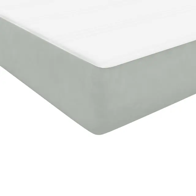 Uporabite to box spring posteljo za uživanje v mirnem spancu! Ponuja maksimalno sprostitev in prijeten spanec. Mehak in udoben material: Vlažna tkanina iz žameta ima mehko in gladko površino, ki zagotavlja prijeten občutek ter vam zagotavlja toploto in popolno udobje.Ležišče z žepkastimi vzmetmi: Ta vzmetnica z žepkastimi vzmetmi ima posamezne žepkaste vzmeti, ki delujejo neodvisno in zagotavljajo prilagojeno podporo, saj se odzivajo le na pritisk na posameznem območju. Takšna zasnova preprečuje, da bi se ležišče "zvijalo skupaj", in zmanjšuje prenos gibanja v primerjavi s tradicionalnimi ležišči z odprtimi vzmetmi. Vsaka žepkasta vzmet podpira telo posebej.Vsestranska vzglavna deska: Ta posteljni okvir je opremljen z vzglavjem, ki zagotavlja odlično oporo hrbtu, ko sedite v postelji in berete ali gledate televizijo, hkrati pa služi tudi kot dekorativni element. Naglavni del je nastavljiv po višini, da ustreza vašim željam.Udobna vzmetnica: Ta nadvložek za vzmetnico z mehko in zračno površino poveča podporo in udobje ter hkrati podaljša življenjsko dobo vaše vzmetnice. Odstranljiva prevleka omogoča enostavno pranje, zato je vzdrževanje enostavno.Podnožje z letvami za optimalno podporo: Za podporo in zračnost ležišča je posteljni okvir opremljen z letvenim dnom. Dobro je vedeti:Iz higienskih razlogov ležišča ne morete vrniti, če je bila embalaža odprta ali odstranjena.Posteljni okvir z vzglavjem:Barva: Svetlo sivaMaterial: Žamet (100 % poliester), vezan les, konstruiran lesDimenzije: 223 x 93 x 78/88 cm (D x Š x V)Vzmetnica:Barva: Bela in svetlo sivaMaterial: Žamet (100 % poliester)Material polnila: Žepkaste vzmeti, penaDimenzije: 90 x 220 x 20 cm (Š x D x V)Nadvzmetnica:Barva: BelaMaterial: Blago (100 % poliester)Material polnila: PenaDimenzije: 90 x 220 x 5 cm (Š x D x V)Odstranljiva in pralna prevlekaPaket vsebuje:1 x Posteljni okvir1 x Vzglavje z ušesi1 x Vzmetnica1 x Nadvložek 3318309
