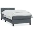 Uporabite to box spring posteljo za uživanje v mirnem spancu! Ponuja maksimalno sprostitev in prijeten spanec. Mehak in udoben material: Vlažna tkanina iz žameta ima mehko in gladko površino, ki zagotavlja prijeten občutek ter vam zagotavlja toploto in popolno udobje.Ležišče z žepkastimi vzmetmi: Ta vzmetnica z žepkastimi vzmetmi ima posamezne žepkaste vzmeti, ki delujejo neodvisno in zagotavljajo prilagojeno podporo, saj se odzivajo le na pritisk na posameznem območju. Takšna zasnova preprečuje, da bi se ležišče "zvijalo skupaj", in zmanjšuje prenos gibanja v primerjavi s tradicionalnimi ležišči z odprtimi vzmetmi. Vsaka žepkasta vzmet podpira telo posebej.Vsestranska vzglavna deska: Ta posteljni okvir je opremljen z vzglavjem, ki zagotavlja odlično oporo hrbtu, ko sedite v postelji in berete ali gledate televizijo, hkrati pa služi tudi kot dekorativni element. Naglavni del je nastavljiv po višini, da ustreza vašim željam.Udobna vzmetnica: Ta nadvložek za vzmetnico z mehko in zračno površino poveča podporo in udobje ter hkrati podaljša življenjsko dobo vaše vzmetnice. Odstranljiva prevleka omogoča enostavno pranje, zato je vzdrževanje enostavno.Podnožje z letvami za optimalno podporo: Za podporo in zračnost ležišča je posteljni okvir opremljen z letvenim dnom. Dobro je vedeti:Iz higienskih razlogov ležišča ne morete vrniti, če je bila embalaža odprta ali odstranjena.Posteljni okvir z vzglavjem:Barva: Temno sivaMaterial: Žamet (100 % poliester), vezan les, konstruiran lesDimenzije: 213 x 83 x 78/88 cm (D x Š x V)Vzmetnica:Barva: Bela in temno sivaMaterial: Žamet (100 % poliester)Material polnila: Žepkaste vzmeti, penaDimenzije: 80 x 210 x 20 cm (Š x D x V)Nadvzmetnica:Barva: BelaMaterial: Blago (100 % poliester)Material polnila: PenaDimenzije: 80 x 210 x 5 cm (Š x D x V)Odstranljiva in pralna prevlekaPaket vsebuje:1 x Posteljni okvir1 x Vzglavje z ušesi1 x Vzmetnica1 x Nadvložek 3318346