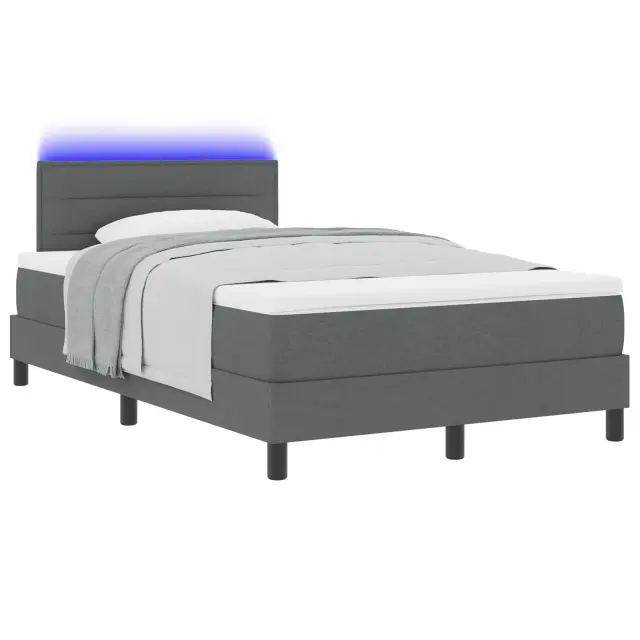vidaXL Box Spring postelja z vzmetnico in LED temno siva 120x200 cm tkanina
