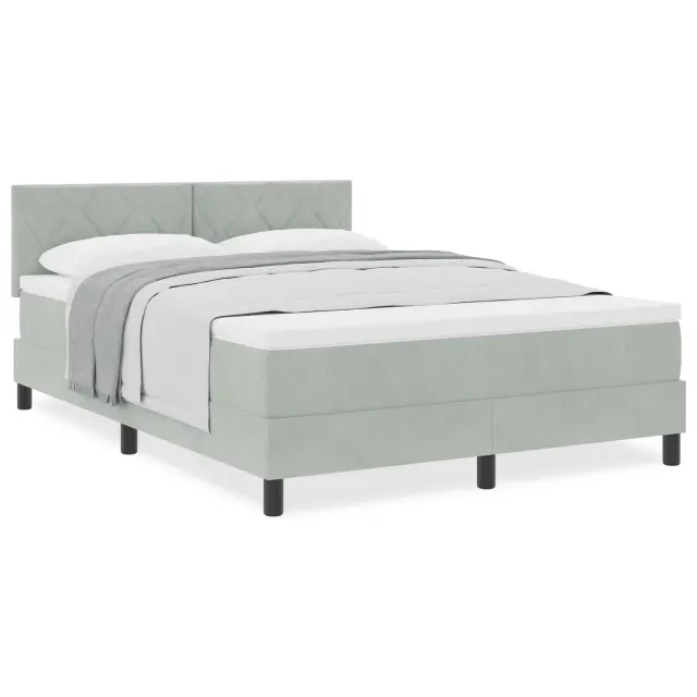 vidaXL Box Spring Postelja z Blazino Svetlo Siva 140x190 cm Žamet