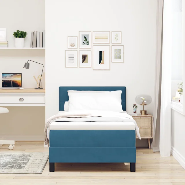 vidaXL Box Spring Postelja z Blazino Temno Modra 90x200 cm Velvet