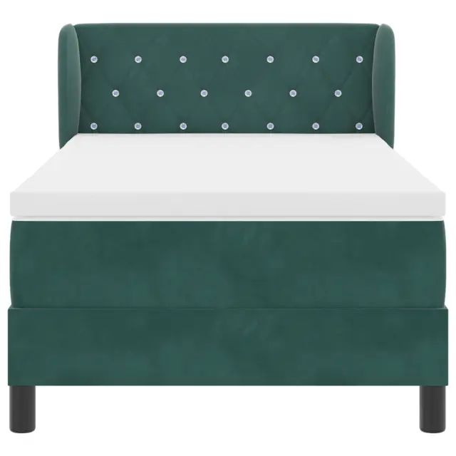 vidaXL Box Spring postelja z blazino, temno zelena, 90x200 cm, žamet