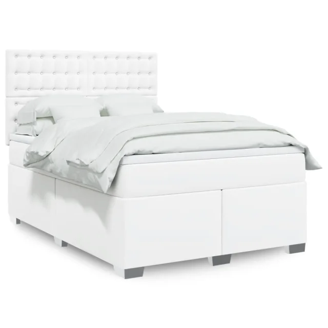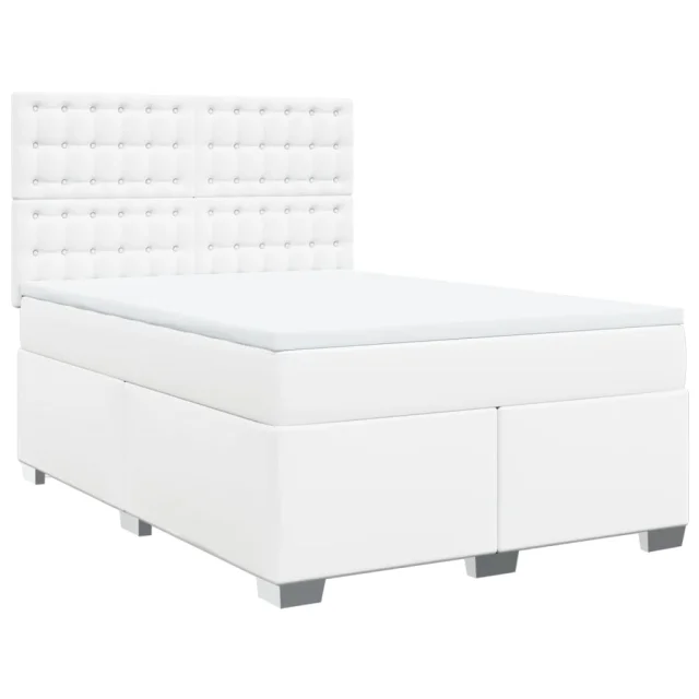 vidaXL Box spring postelja z vzmetnico bel 140x190 cm umetno usnje