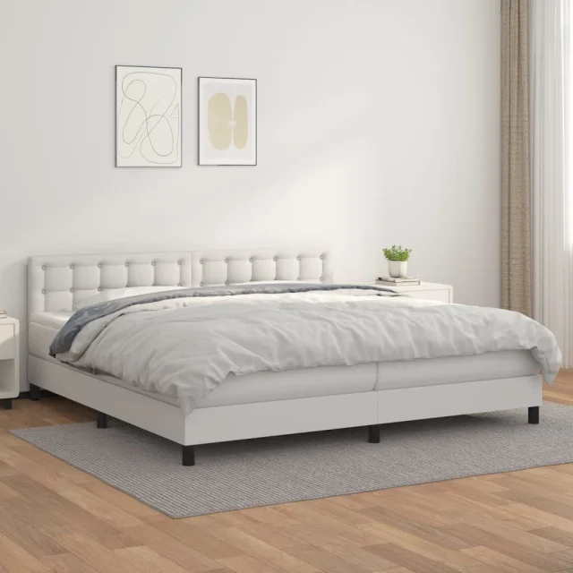 vidaXL Box spring postelja z vzmetnico bela 200x200 cm umetno usnje