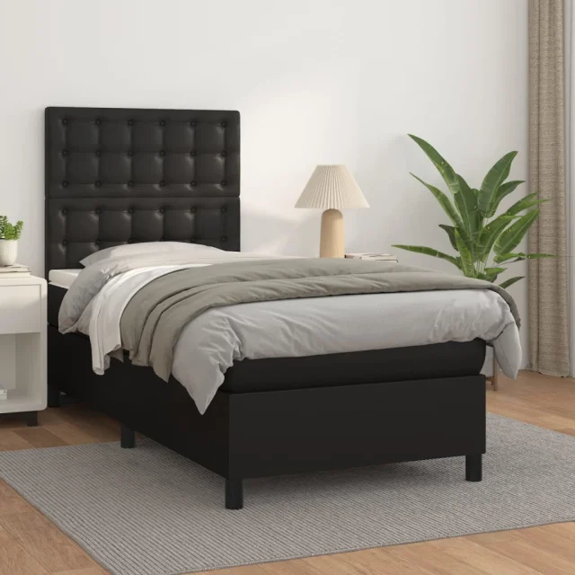 vidaXL Box spring postelja z vzmetnico črn 100x200 cm umetno usnje