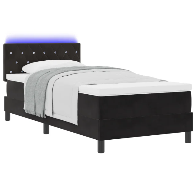 vidaXL Box Spring postelja z vzmetnico in LED Črna 90x190 cm Žamet