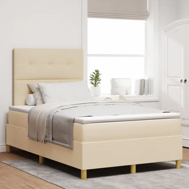 Ta sodoben posteljni okvir z gumbi je vse o eleganci, s čistimi linijami in stilsko krem barvo. Popoln je za sodobne spalnice, ustvarja prijeten in vabljiv prostor, hkrati pa udobno sprejme dva za luksuzno spanje.