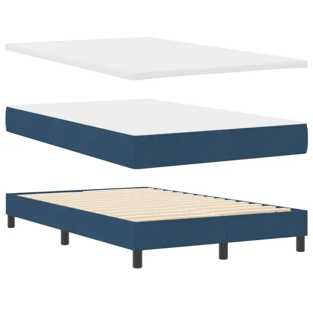 Ta modra oblazinjena postelja z vzmetnico je vse o stilu in udobju za vsako spalnico. S svojim modernim videzom in klasično modro tkanino ta posteljni okvir doda dotik elegance, hkrati pa ti nudi podporo, ki jo potrebuješ za dober spanec.