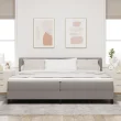Ta moderna box spring postelja ima spodobno zasnovo s svojimi mehki linijami in kakovostnim blagom. Z dimenzijo 200 x 200 cm je idealna za vsako sodobno spalnico ali sobo za goste. Svetlo sivo blago in trdna črna struktura ustvarjata čudovit videz, kar je odlična izbira za odrasle, ki iščejo udobno in stilno prostoru za spanje.