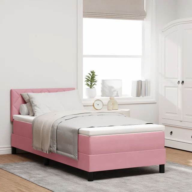 vidaXL Box Spring postelja z vzmetnico in LED Roza 100x200 cm Žamet