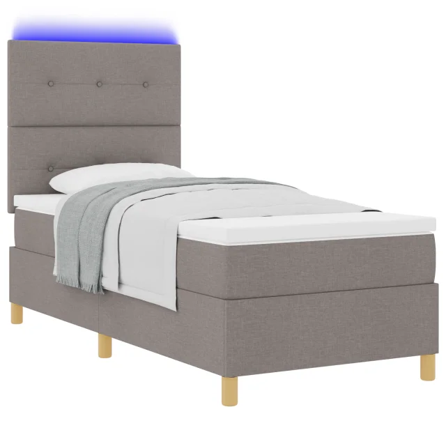 Ta trendovski posteljni okvir popestri vsako spalnico in je narejen za tvoje udobje in sprostitev. Unikatna taupe barva, skupaj z mehko vzmetnico in šik LED trakom, ustvari prijetno vzdušje za mirne večere, ne glede na to, ali se potopiš v dobro knjigo ali samo iščeš kvaliteten spanec.