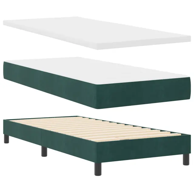 vidaXL Box Spring postelja z vzmetnico in LED temno zelena 90x200 cm žamet